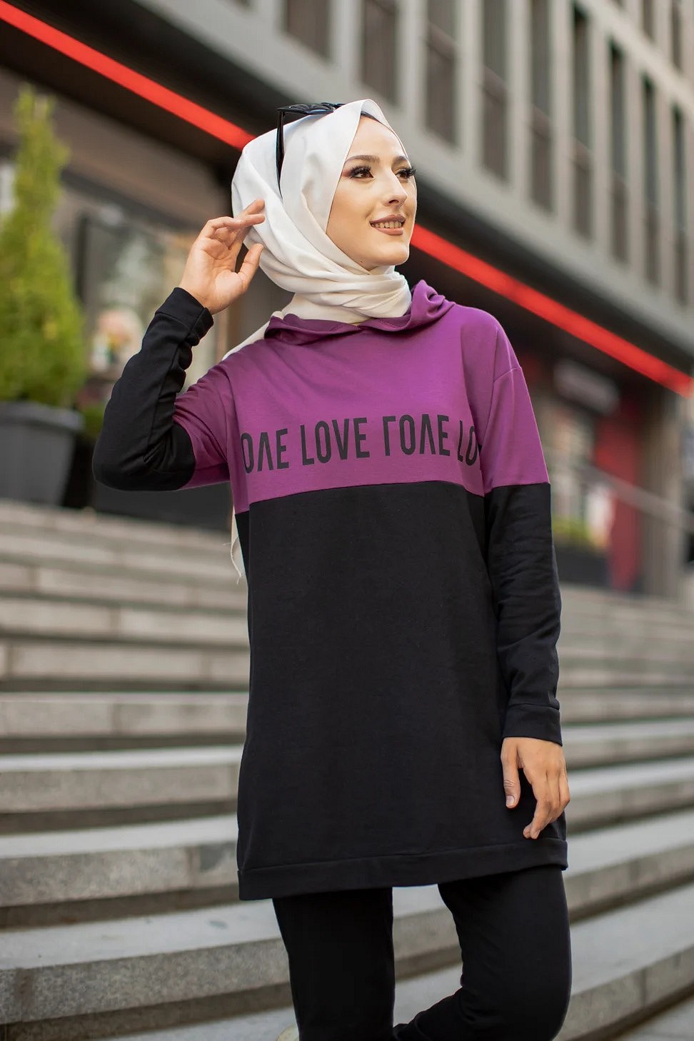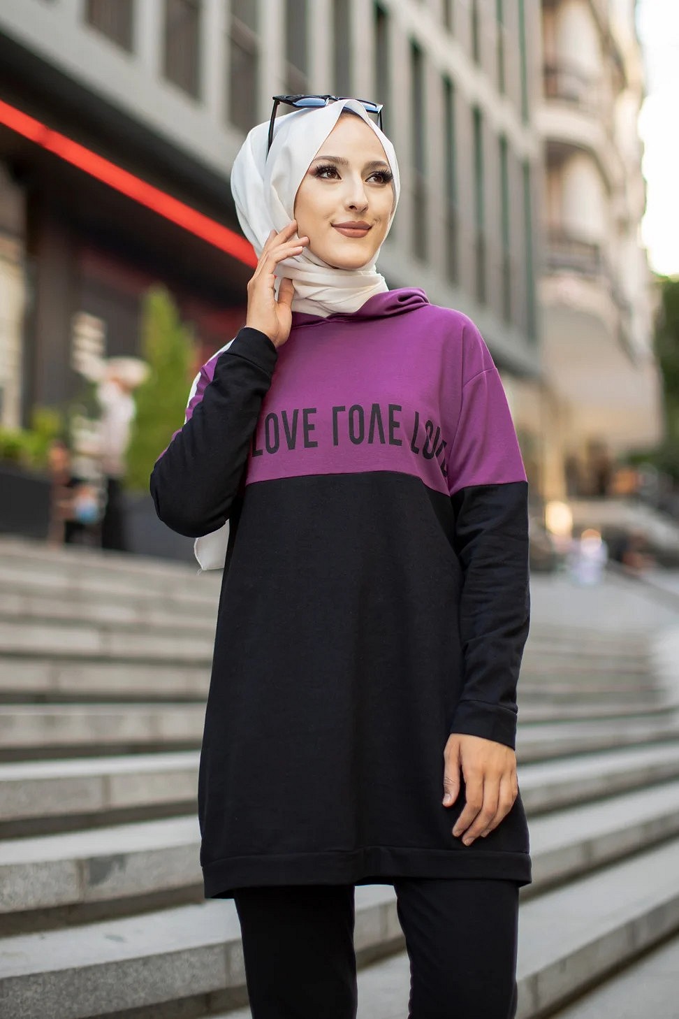 Tunique avec strass et capuche (Vêtement décontracté moderne pour hijab) - Couleur violet - REF. 35963 (19.90 €)