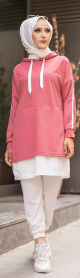 Tunique longue sport à capuche (Vêtement moderne pour femme voilée) - Couleur Rose - REF. 34565 (29.00 €)
