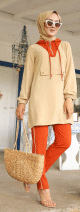 Ensemble casual tunique à capuche et pantalon (Modest Fashion) - Couleur beige et brique - REF. 33893 (35.00 €)