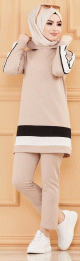 Ensemble décontracté pour femme : Tunique à capuche et Pantalon (Vêtement de sport pour musulmane) - Couleur beige - REF. 36228 (32.00 €)