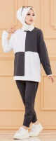 Ensemble femme bicolore (Vetement hijab sport moderne) - Couleur blanc et anthracite - REF. 36384 (29.90 €)