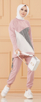 Survêtement original ample (Ensemble Décontracté et Sport pour femme musulmane) - Couleur rose poudré, noir et blanc - REF. 36647 (29.90 €)