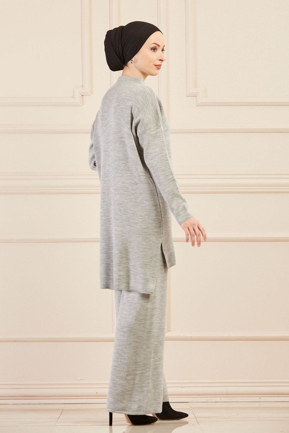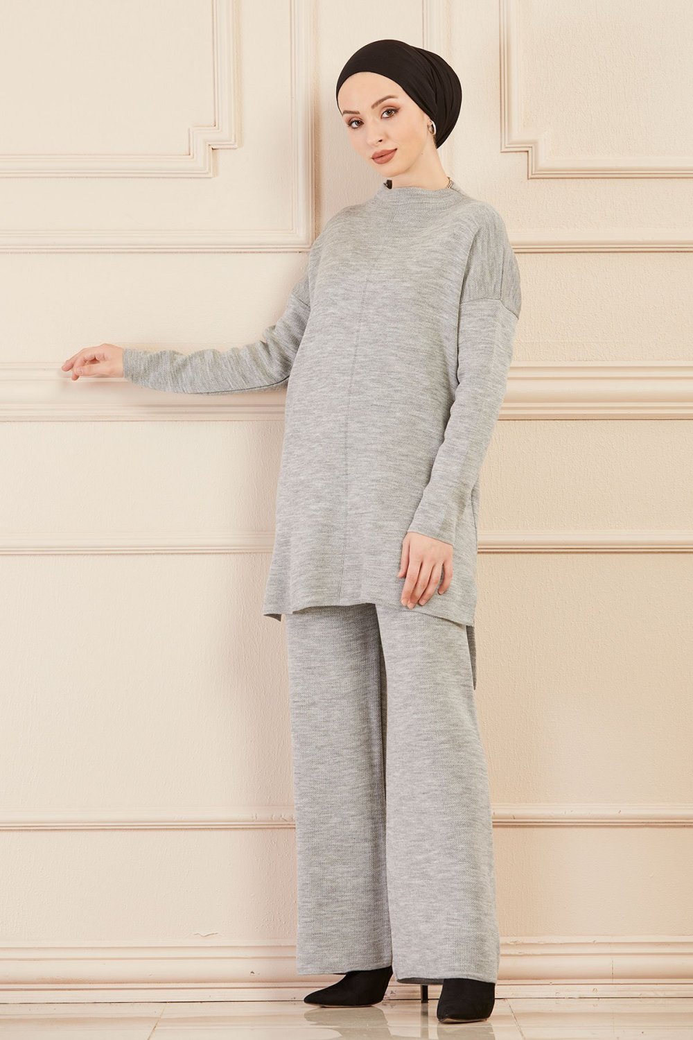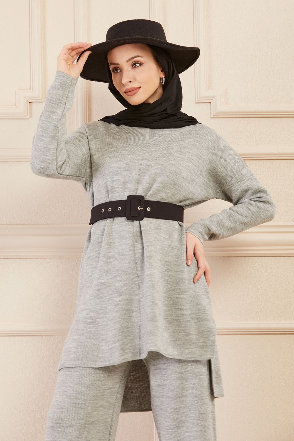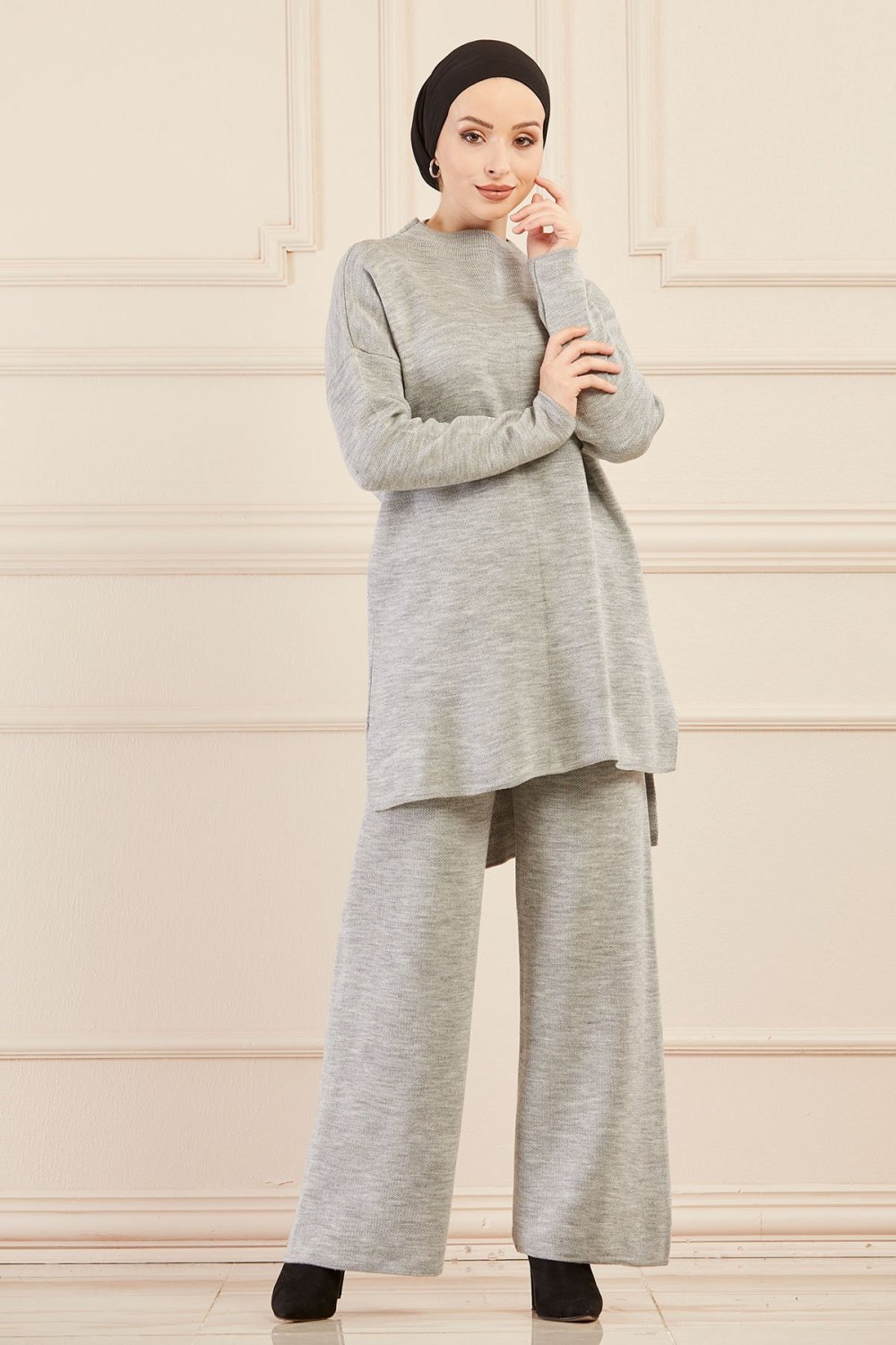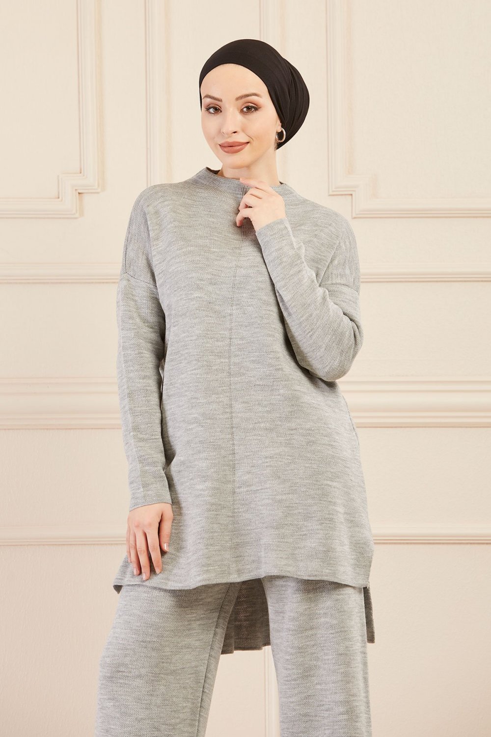 Ensemble ample en maille pour saison automne-hiver (Tenue musulmane deux pièces : tunique et pantalon) - Couleur gris clair Vetement & Accessoire