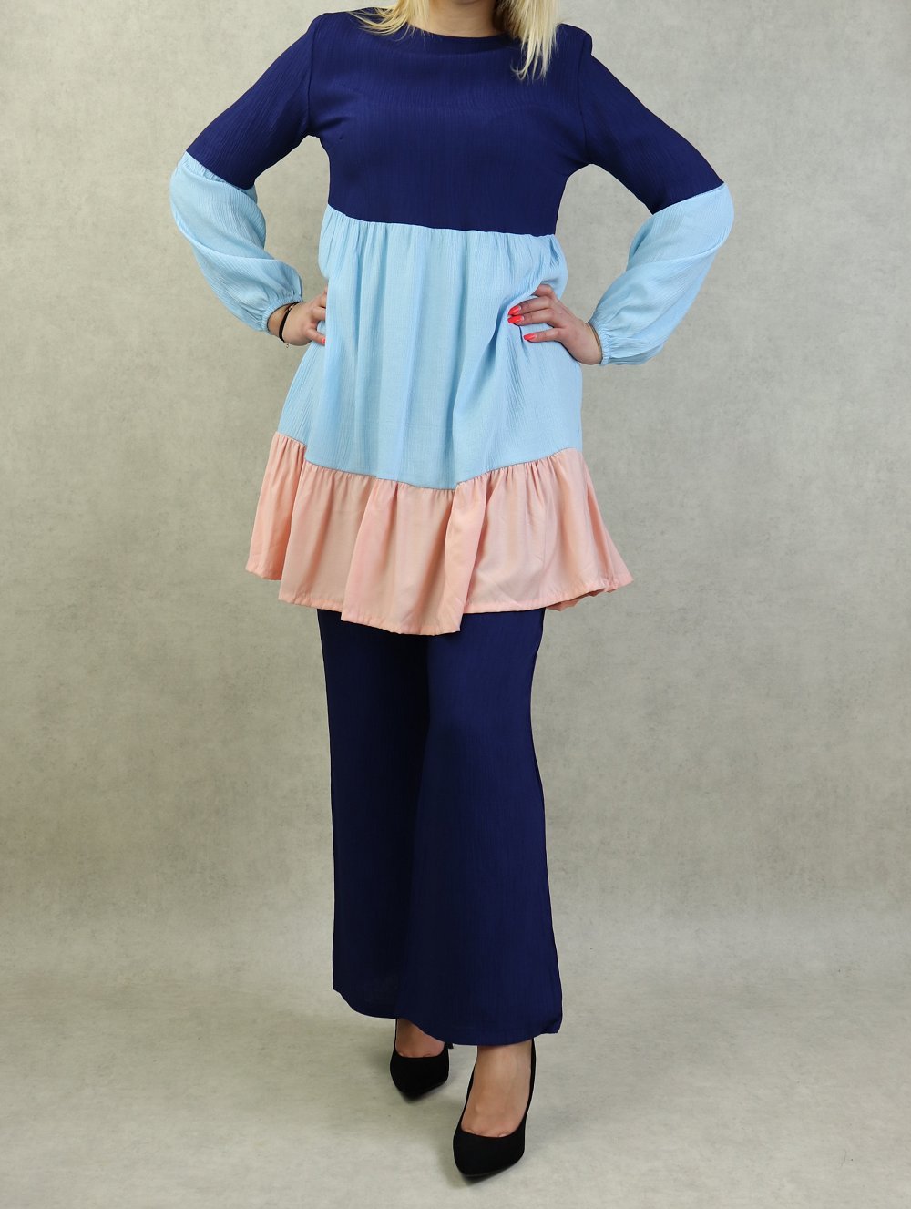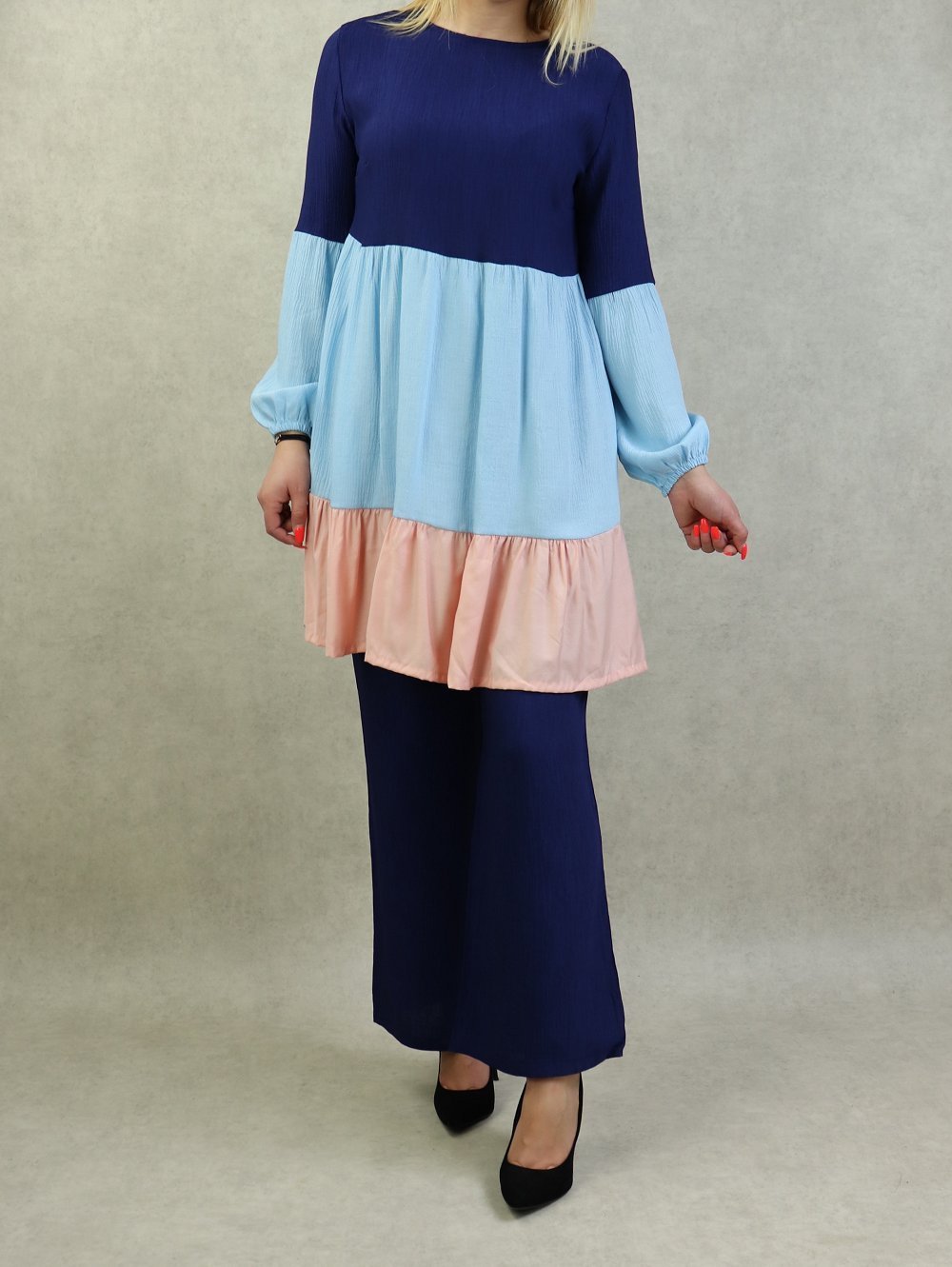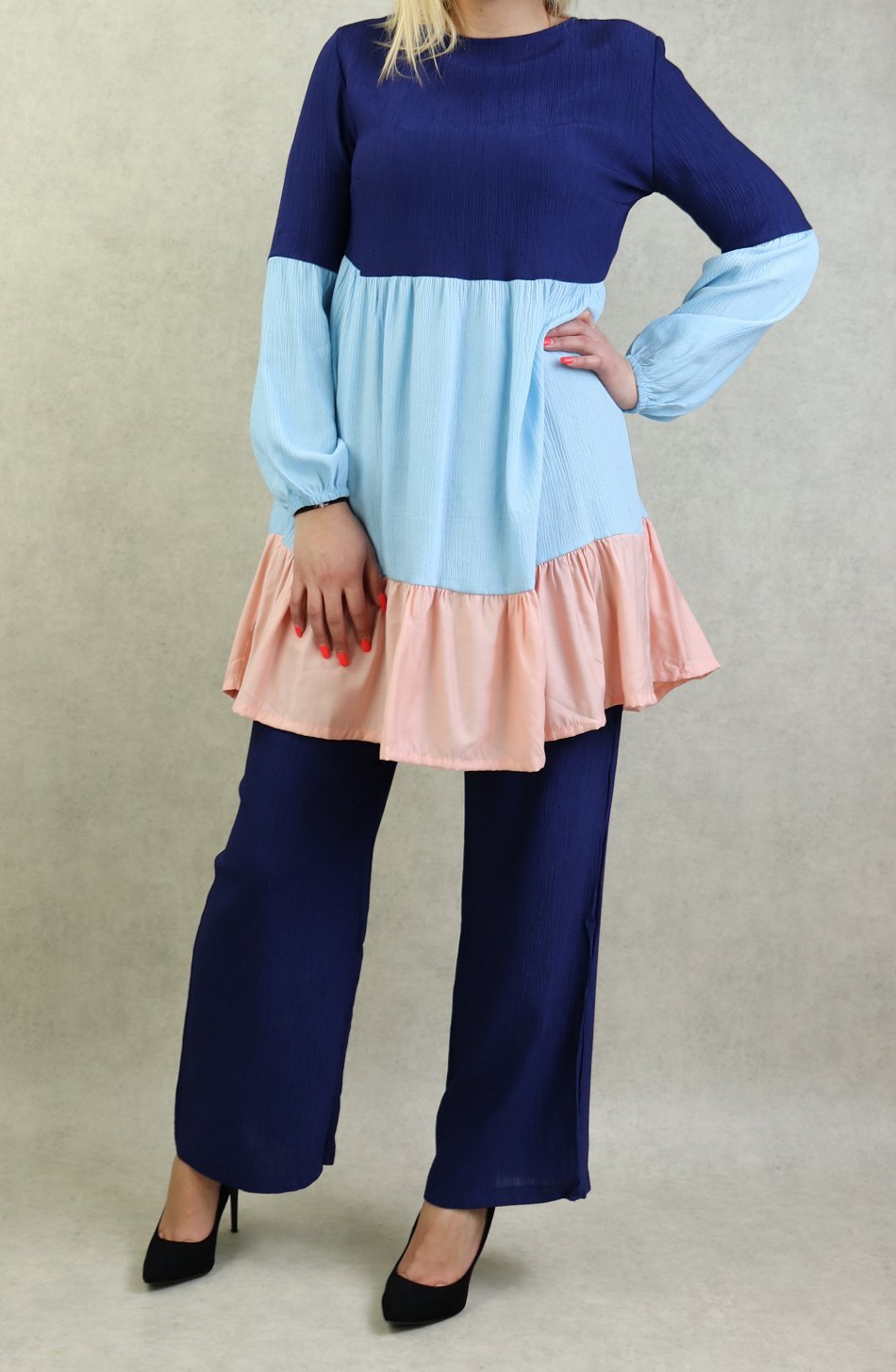 Ensemble ample et décontracté 2 pièces (tunique et pantalon) de couleur bleu marine, bleu ciel et saumon (Grande taille pour femme) Vetement & Accessoire