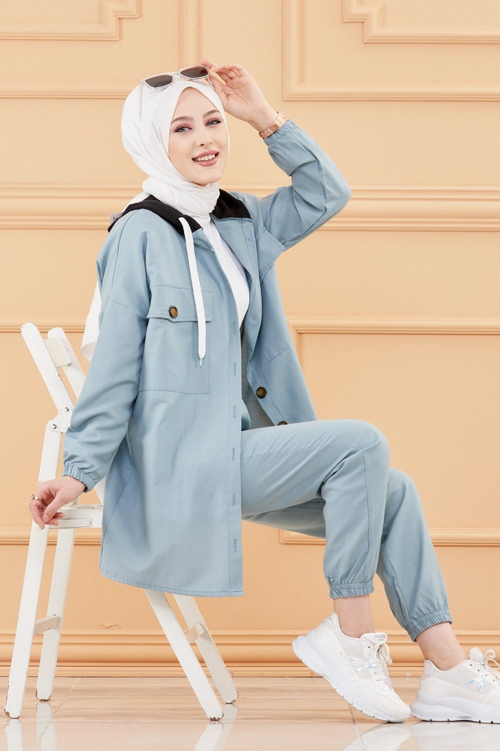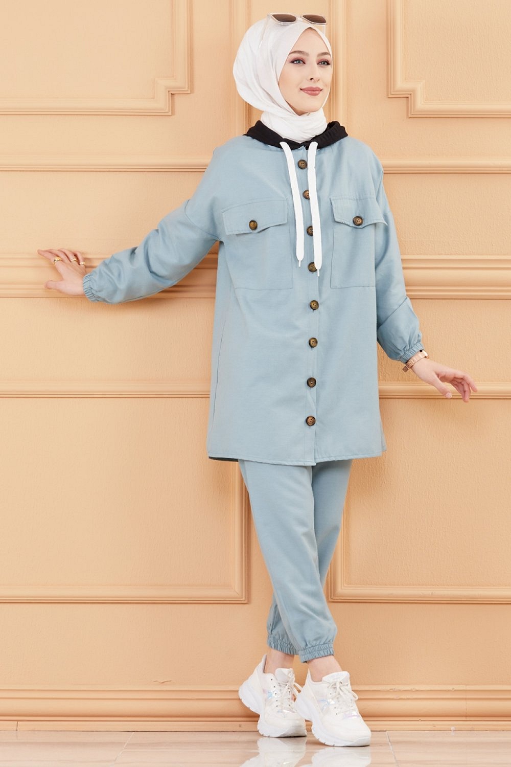 Ensemble casual veste ample et pantalon pour femme (Modest Fashion) - Couleur menthe Vetement & Accessoire