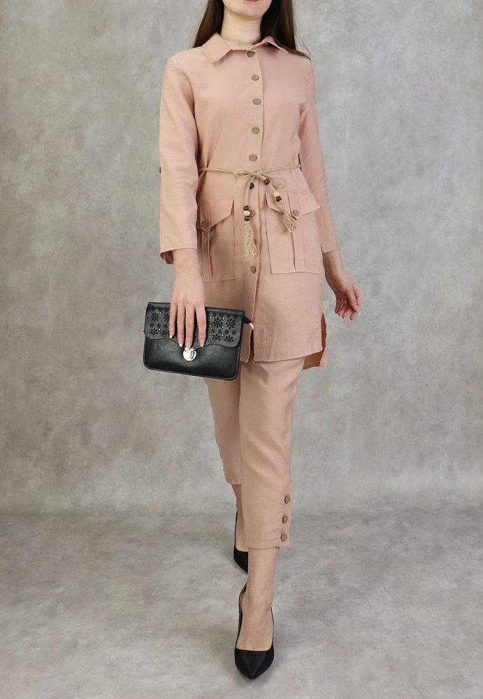 Ensemble ample pour saison automne hiver (Tenue hijab deux pièces : tunique et pantalon) - Couleur vieux rose - REF. 37148 (38.00 €) - En Promotion à 29.90 €