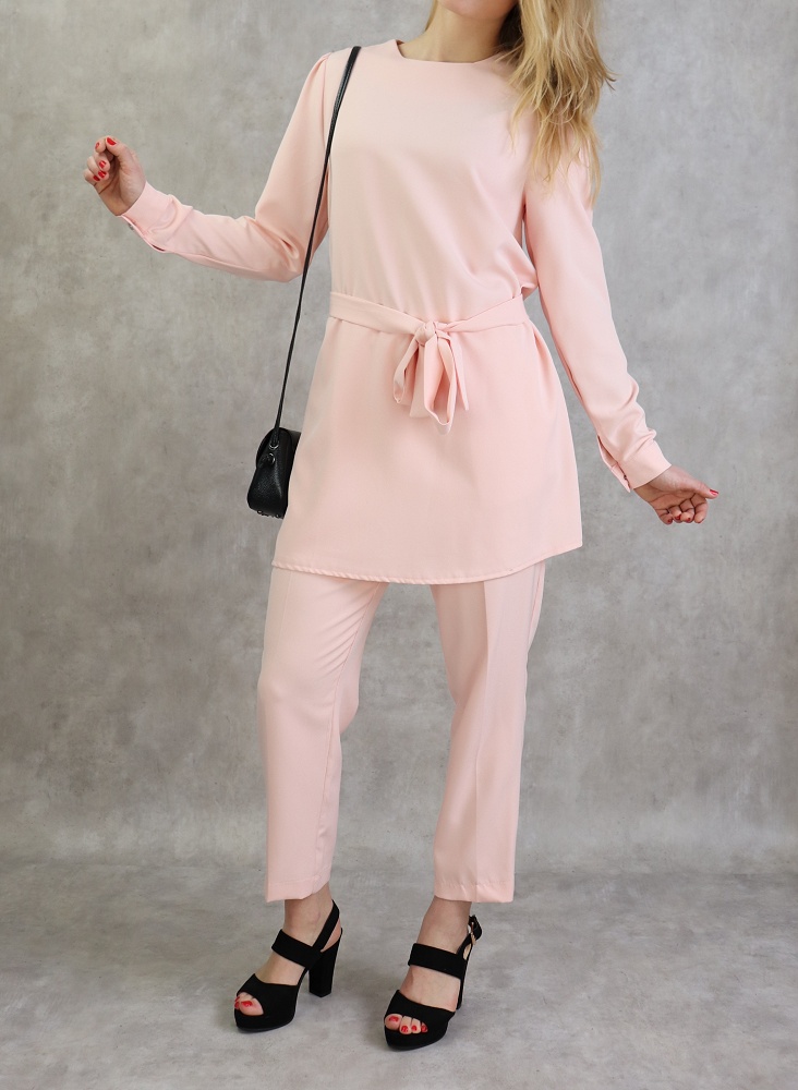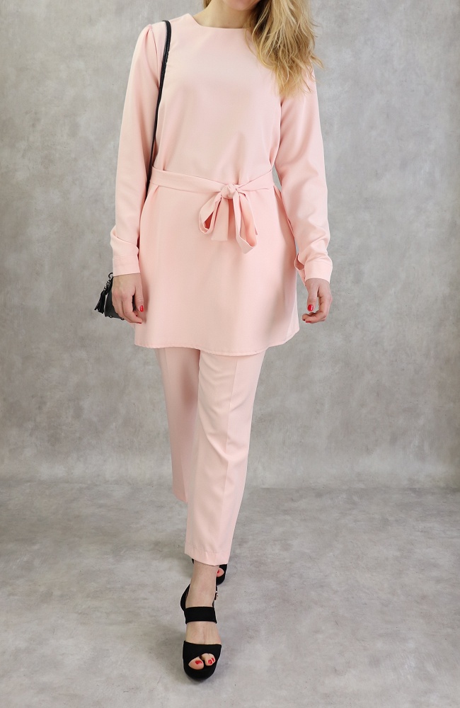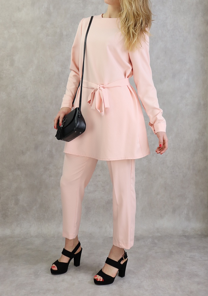 Ensemble chic 2 pièces tunique et pantalon de couleur rose clair Vetement & Accessoire