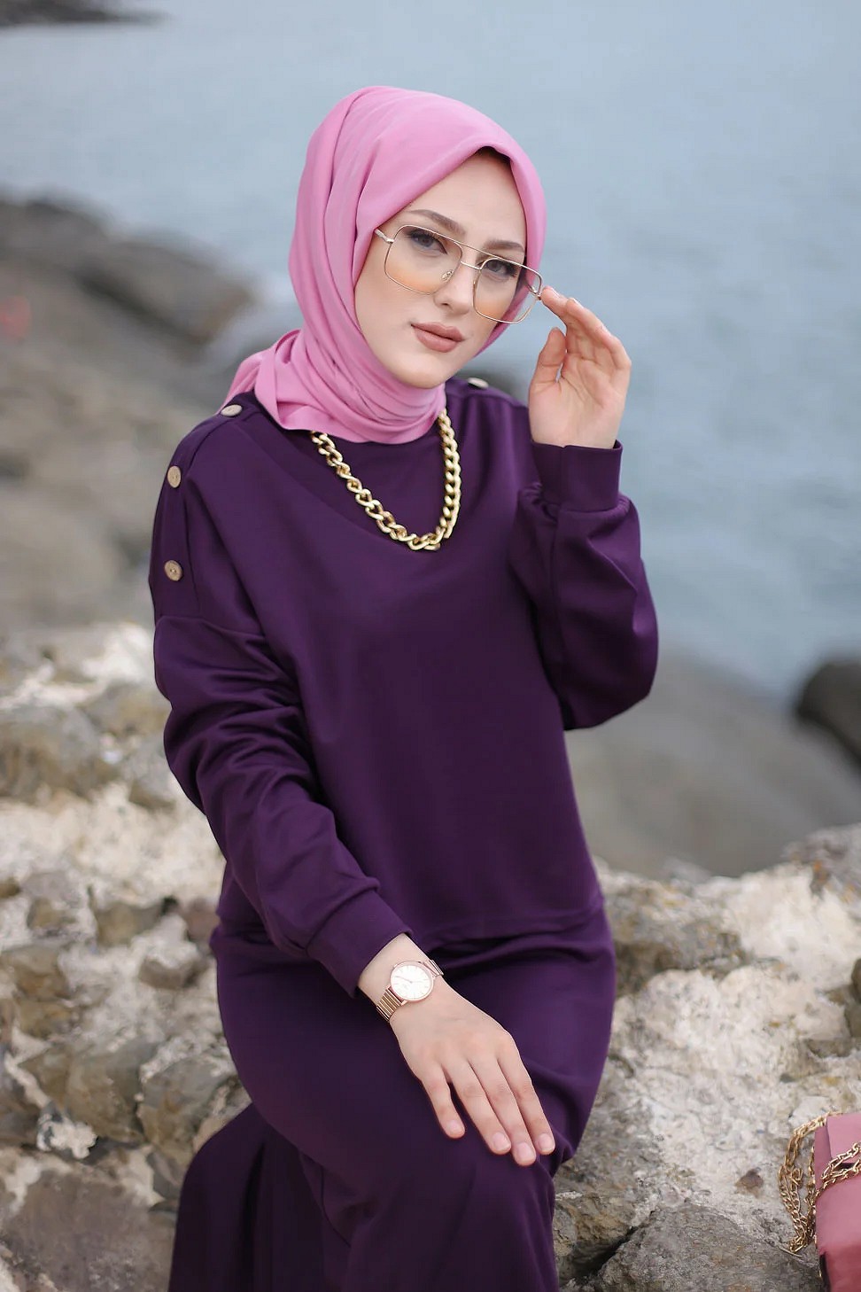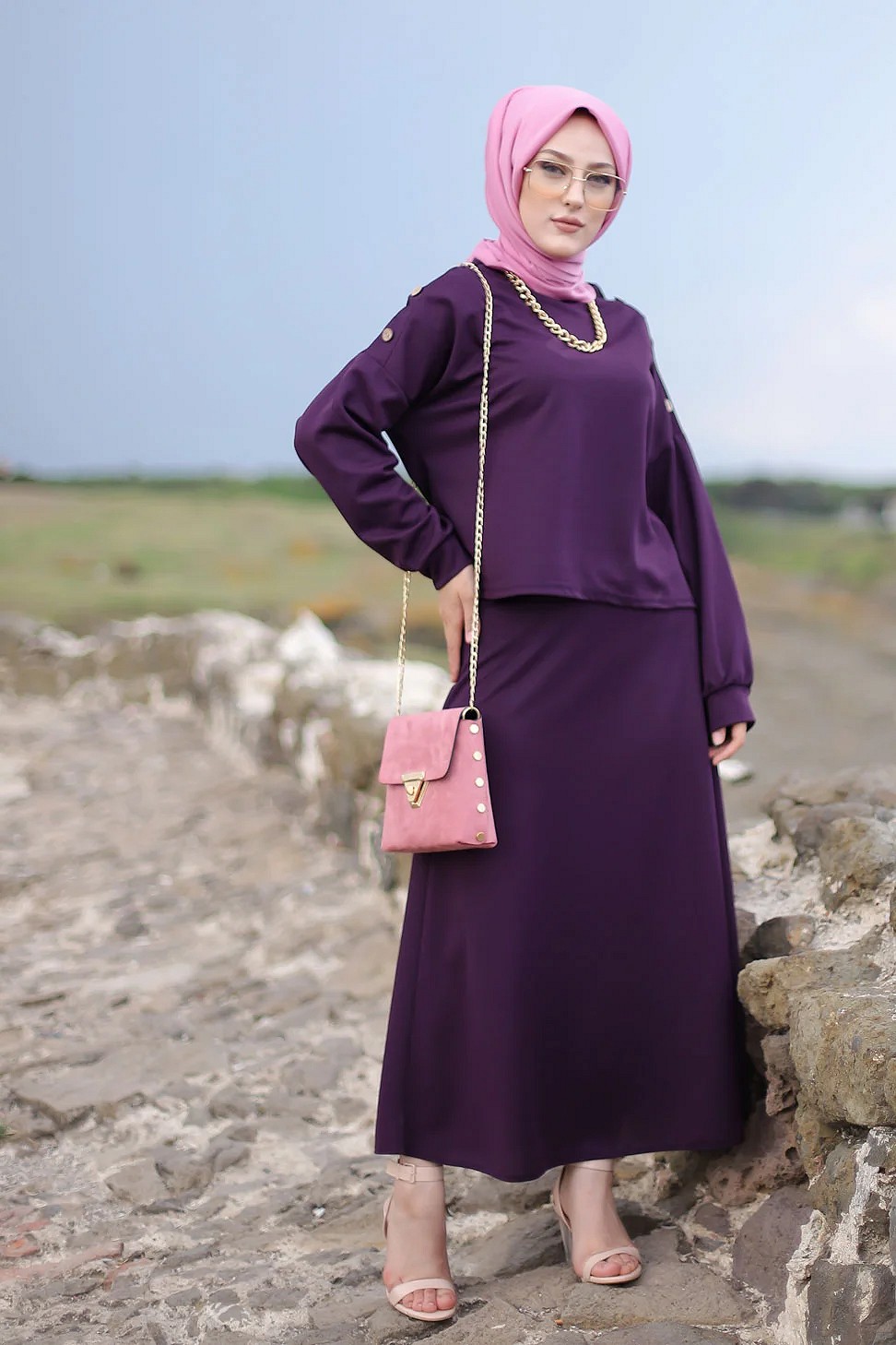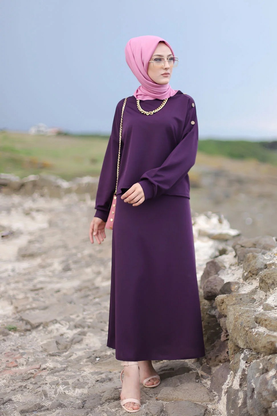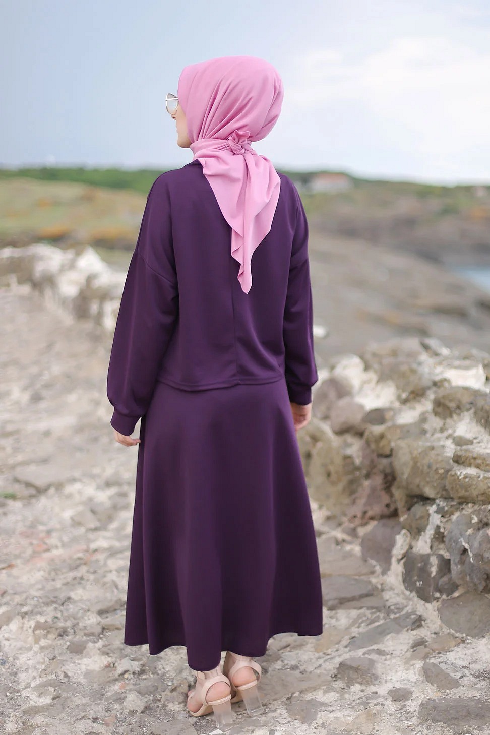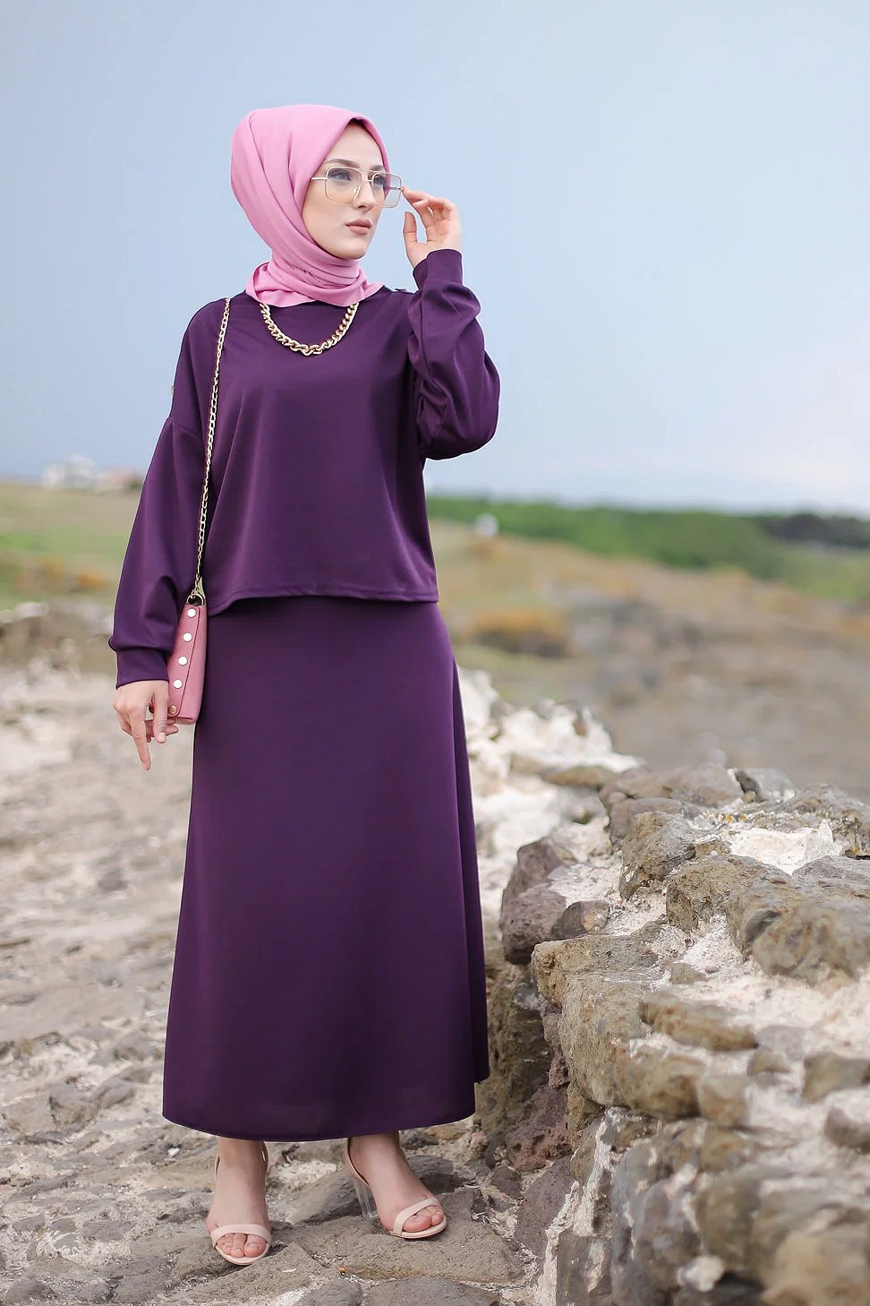 Ensemble chic deux pièces haut et jupe (Vetement femme voilée) - Couleur prune Vetement & Accessoire