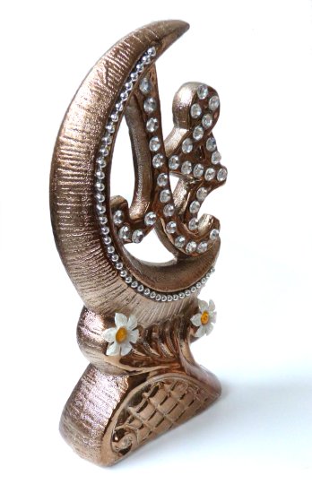 Objet décoratif en porcelaine dorée avec calligraphies Allah - Muhammad (SAW) décoré de jolies émeraudes blanches - REF. 23402 (25.00 €) - En Promotion à 18.00 €