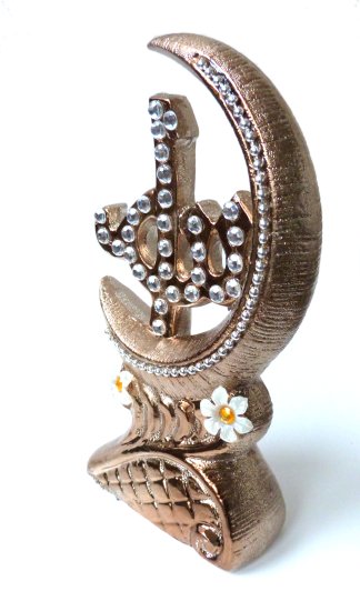 Objet décoratif en porcelaine dorée avec inscription Allah - REF. 23452 (8.50 €)