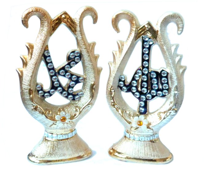 Ensemble de 2 pièces décoratives dorées avec inscription Allah et Mohammed décorées de diamants et rubis blancs - REF. 23427 (29.00 €) - En Promotion à 24.90 €