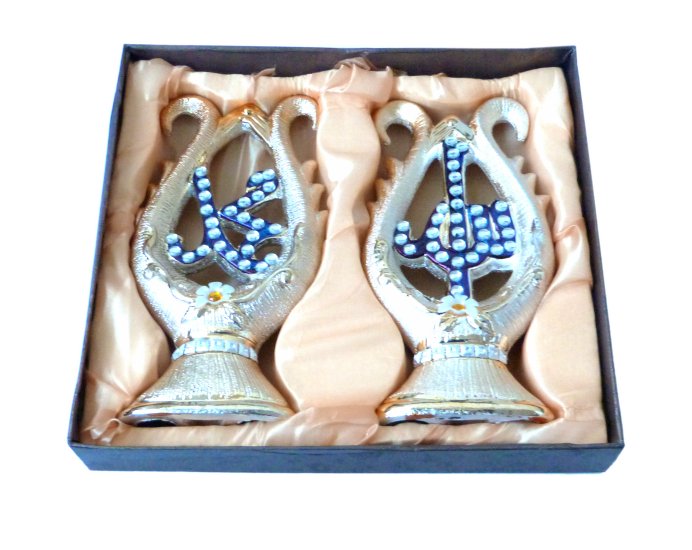 Ensemble de 2 pièces décoratives bronze avec inscription Allah et Mohammed décorées de diamants - REF. 23521 (19.90 €)
