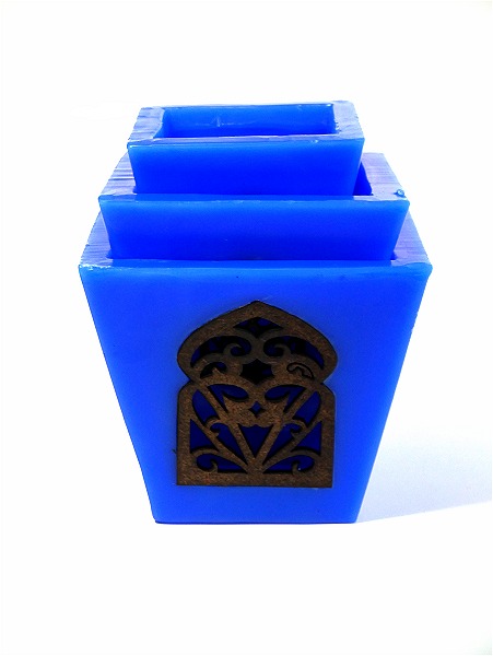 Ensemble de trois photophores bougie de décoration en provenance du Maroc de couleur bleu - REF. 29370 (14.90 €)