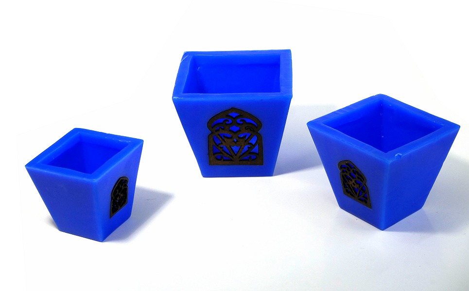 Ensemble de trois grands photophores de bougies decoratives de couleur bleu