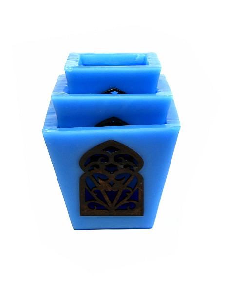 Ensemble de trois photophores bougie de décoration en provenance du Maroc de couleur bleu - REF. 29370 (14.90 €)