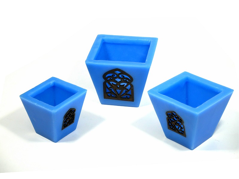 Ensemble de trois grands photophores de bougies decoratives de couleur bleue