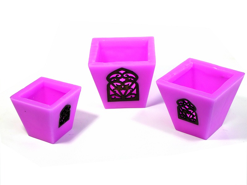 Ensemble de trois grands photophores de bougies décoratives de couleur mauve - REF. 29461 (17.90 €)