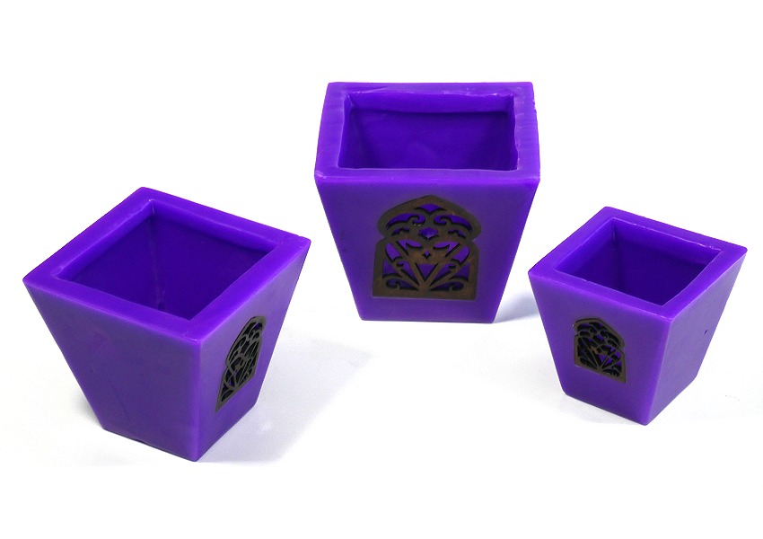 Ensemble de trois grands photophores de bougies décoratives de couleur violet - REF. 29463 (17.90 €)