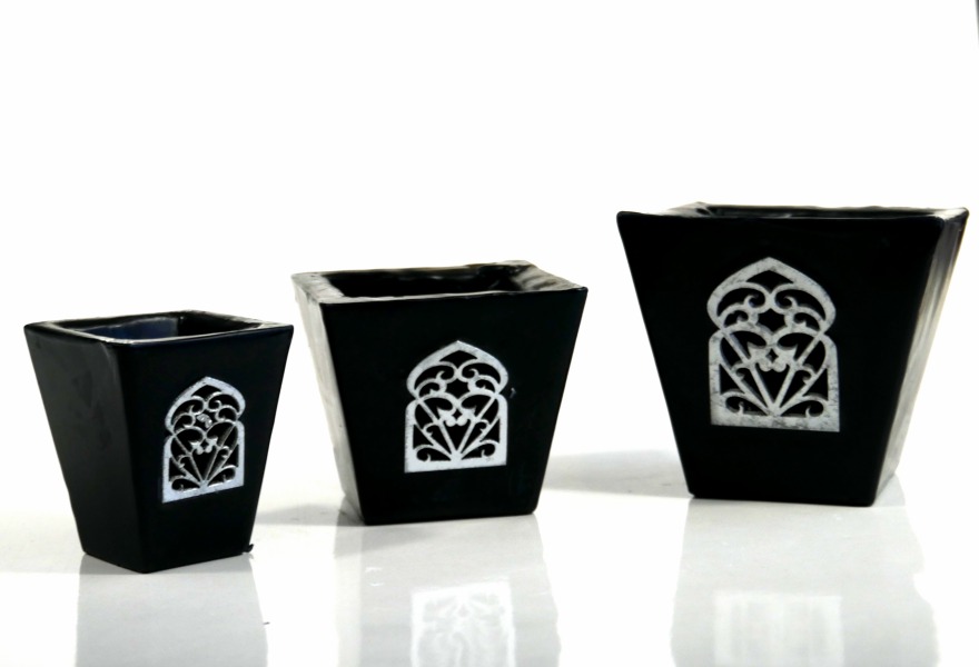 Ensemble de trois grands photophores de bougies décoratives de couleur noires - REF. 29465 (17.90 €)