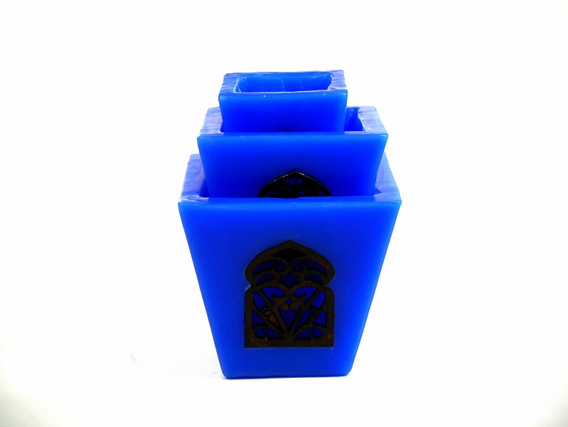 Ensemble de trois photophores bougie de decoration en provenance du Maroc de couleur bleu