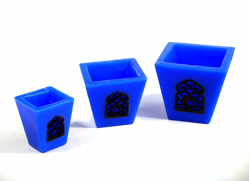 Ensemble de trois grands photophores de bougies décoratives de couleur bleu - REF. 29462 (17.90 €)