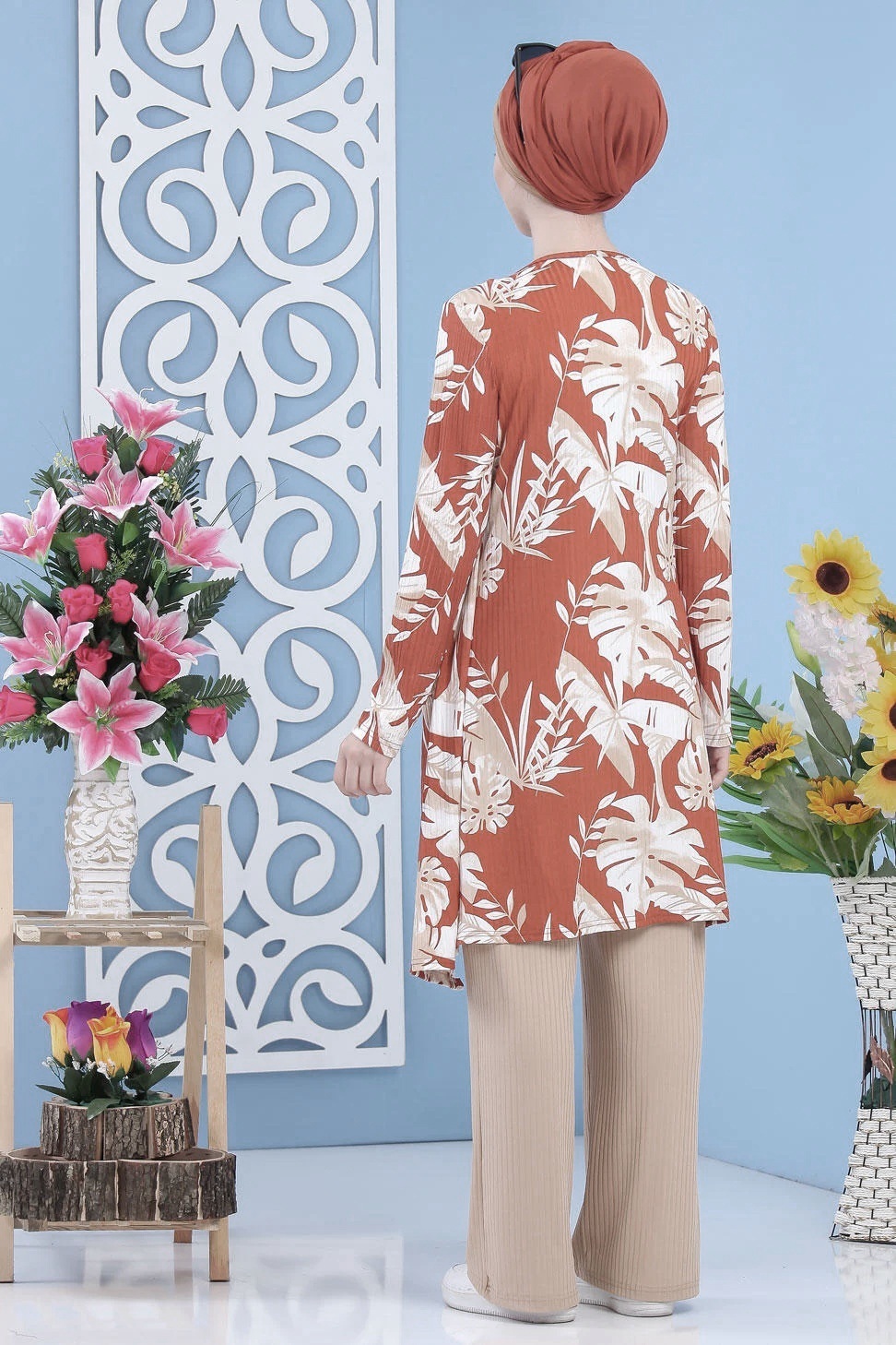 Ensemble décontracté 2 pièces tunique et gilet cousu + pantalon de couleur beige et rouille Vetement & Accessoire
