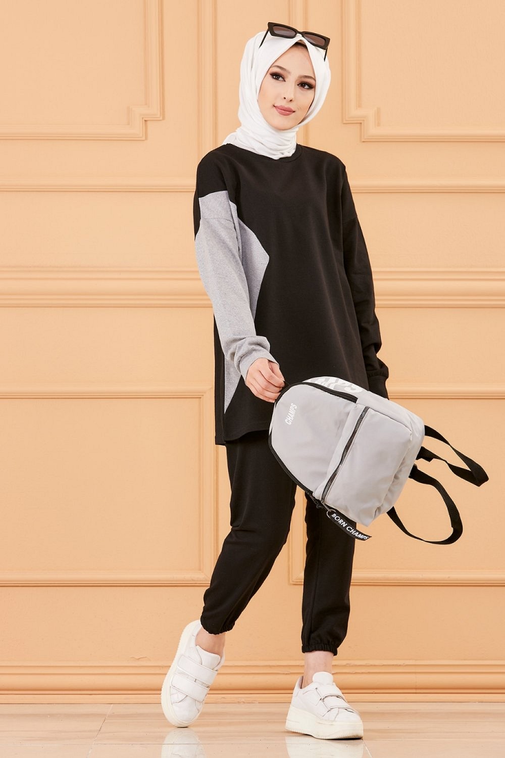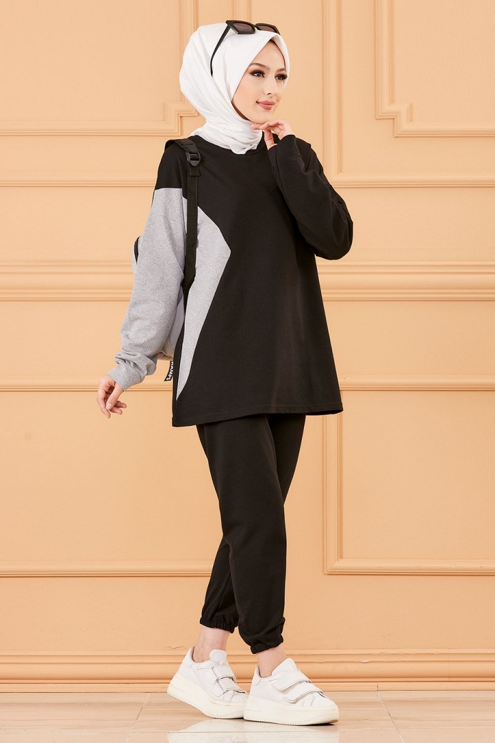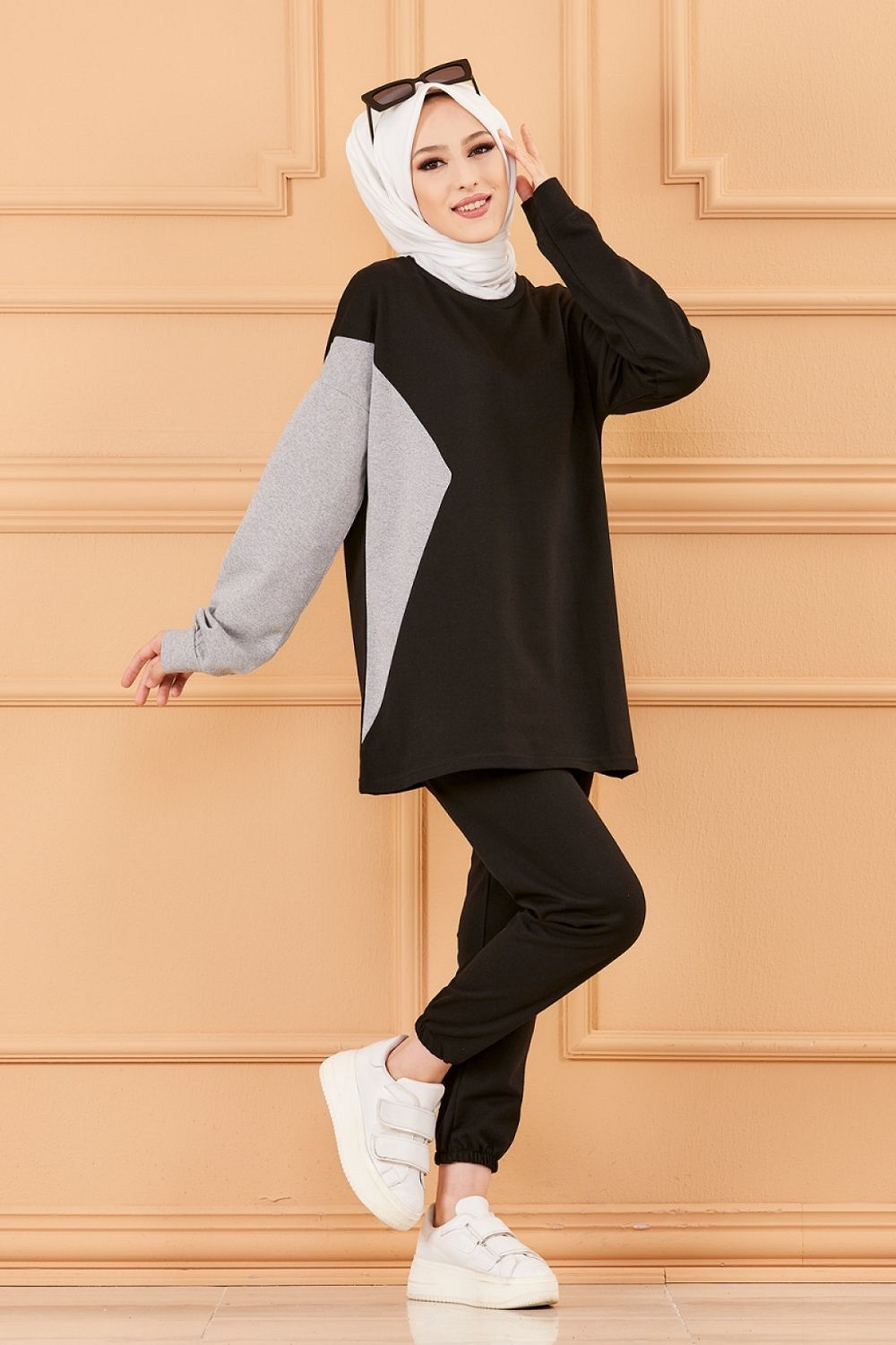 Ensemble decontracte et sport pour femme (Boutique vetement musulman en ligne) - Couleur noir et gris