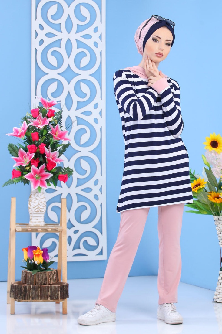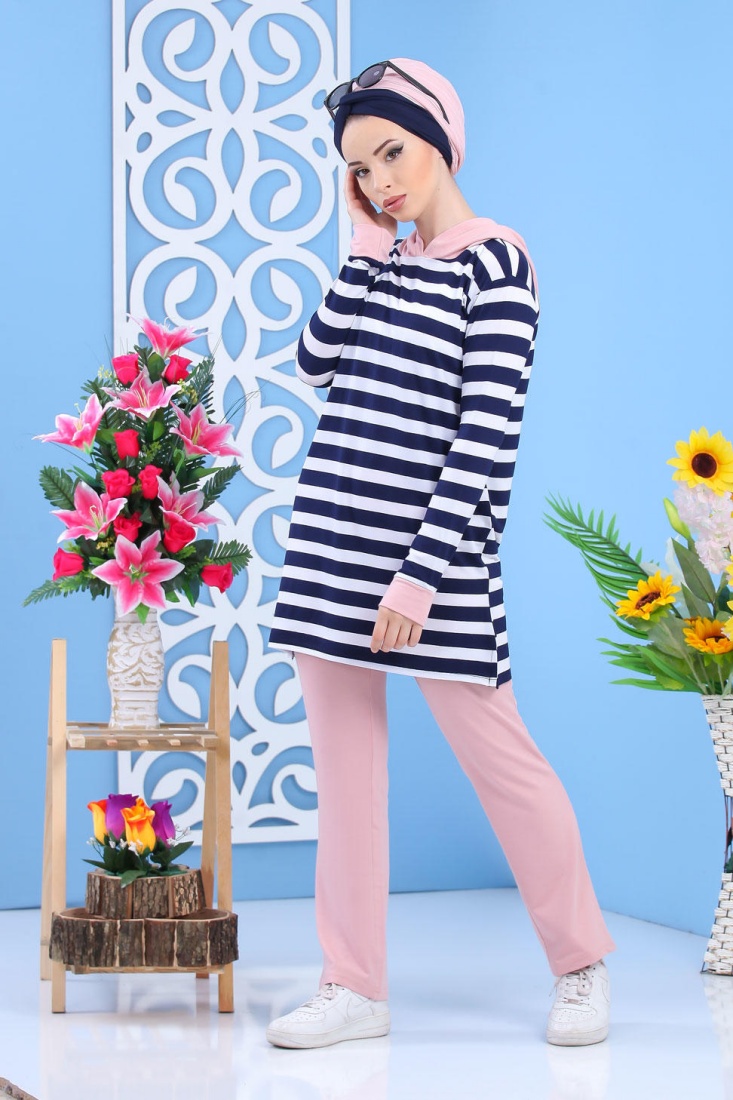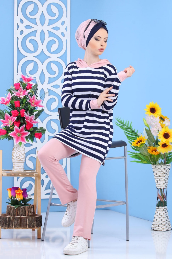 Ensemble décontracté pour femme : Tunique à capuche et Pantalon (Tenue Sport Hidjab pour musulmane) - Couleur bleu marine - REF. 36232 (32.00 €)