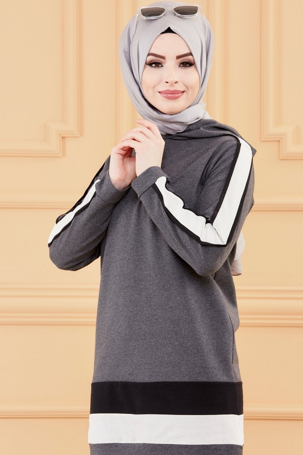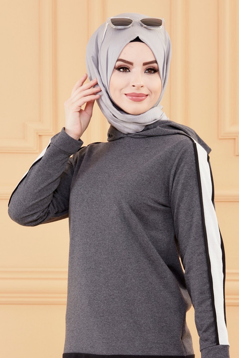 Ensemble décontracté pour femme : Tunique à capuche et Pantalon (Tenue sport Hijab) - Couleur anthracite Vetement & Accessoire