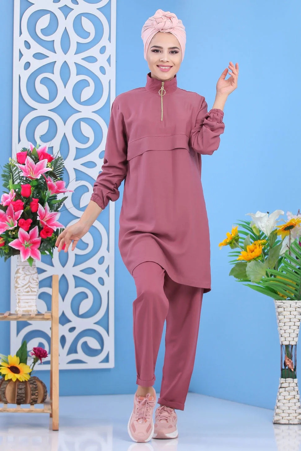 Ensemble décontracté sport pour femme (2 pièces : tunique + pantalon) - Couleur vieux rose Vetement & Accessoire