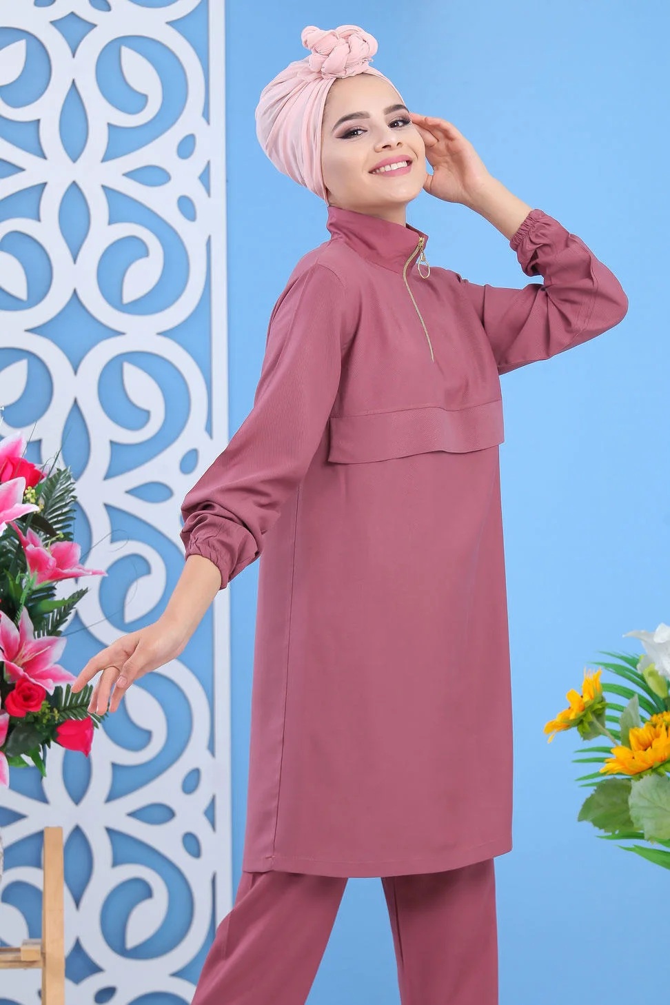Tunique type sweat-shirt à capuche (Vêtement sport et tendance pour hijab) - Couleur vieux rose - REF. 38285 (22.00 €)