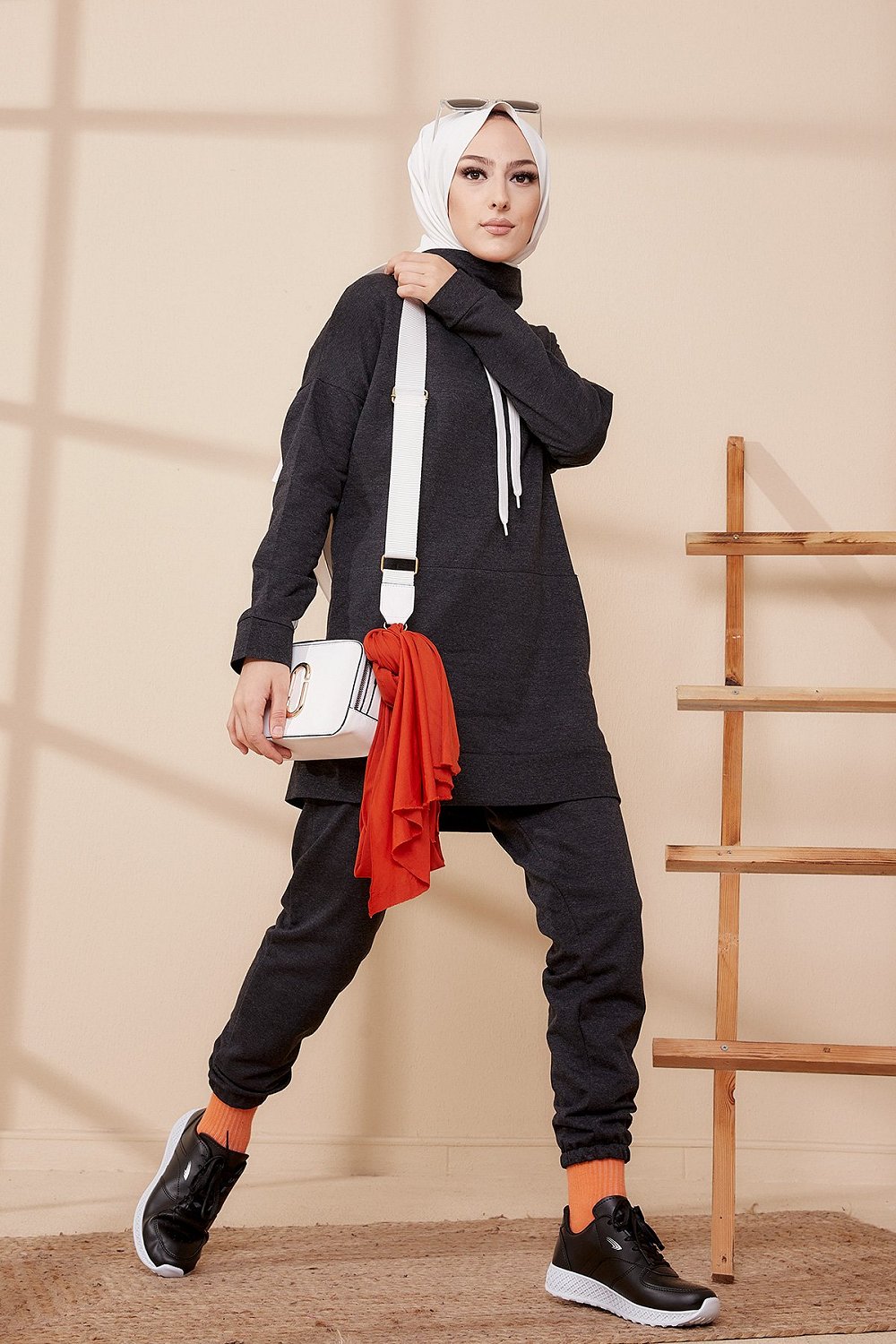 Ensemble décontracté sweat et pantalon (Tenue Sport Hijab) - Couleur anthracite Vetement & Accessoire
