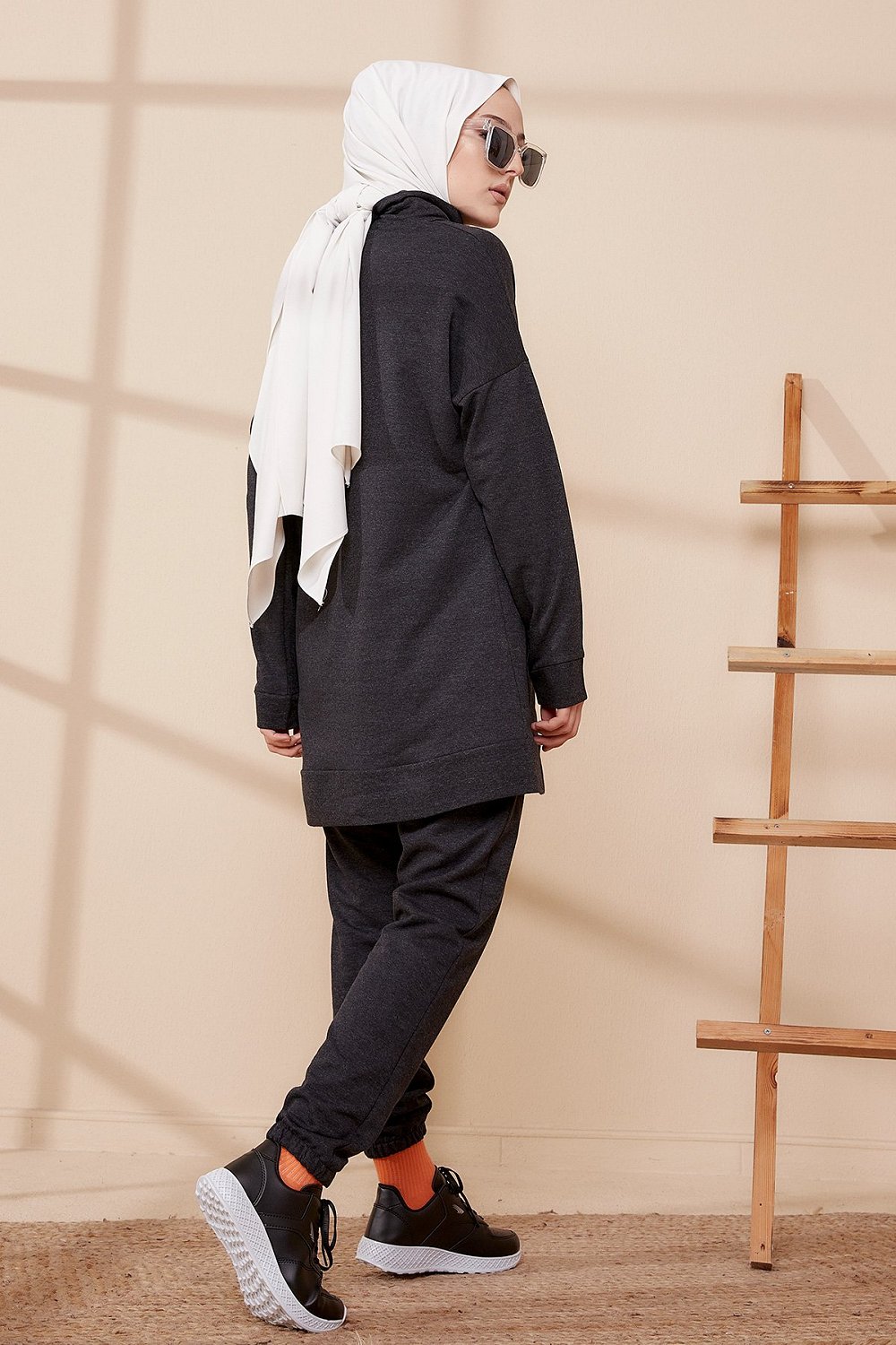 Ensemble decontracte sweat et pantalon (Tenue Sport Hijab) - Couleur anthracite