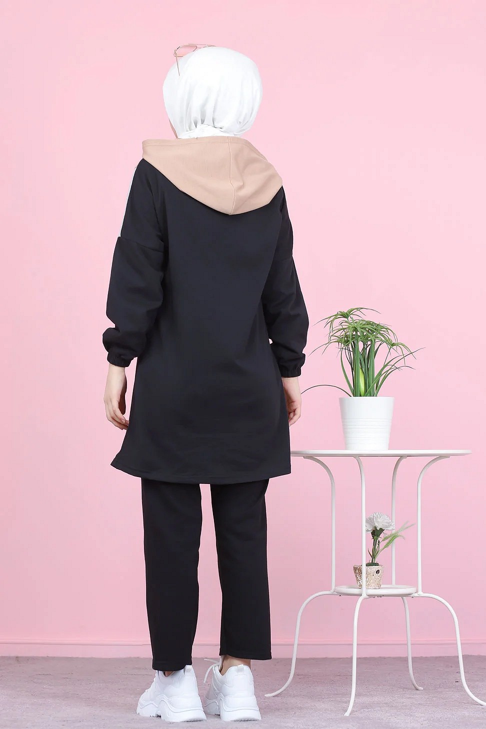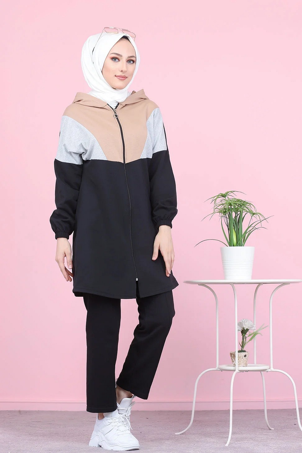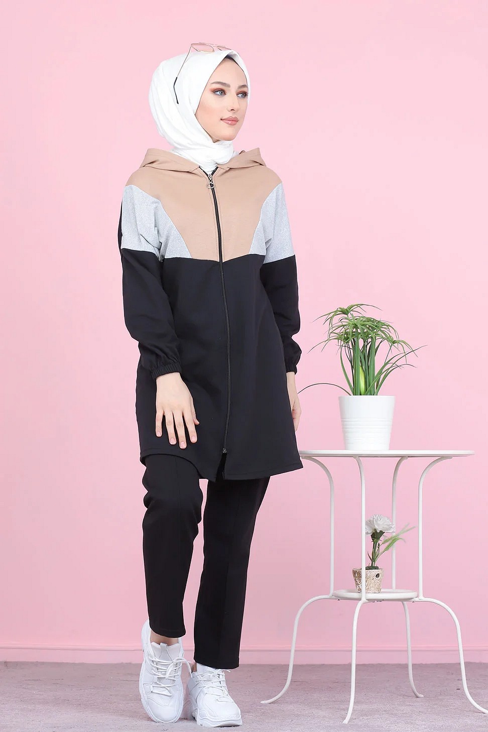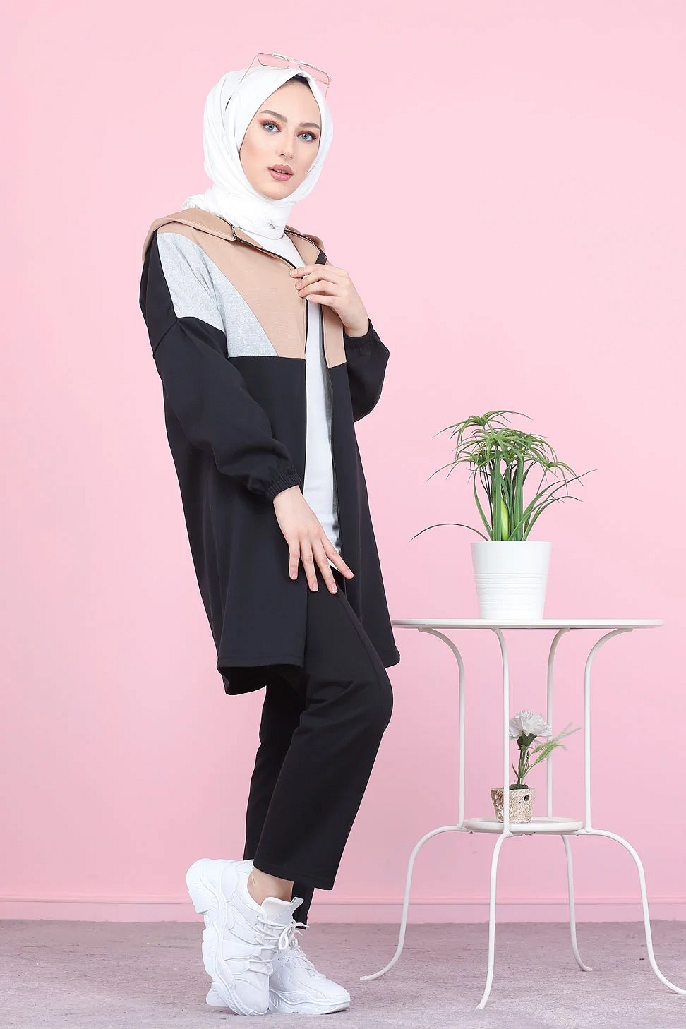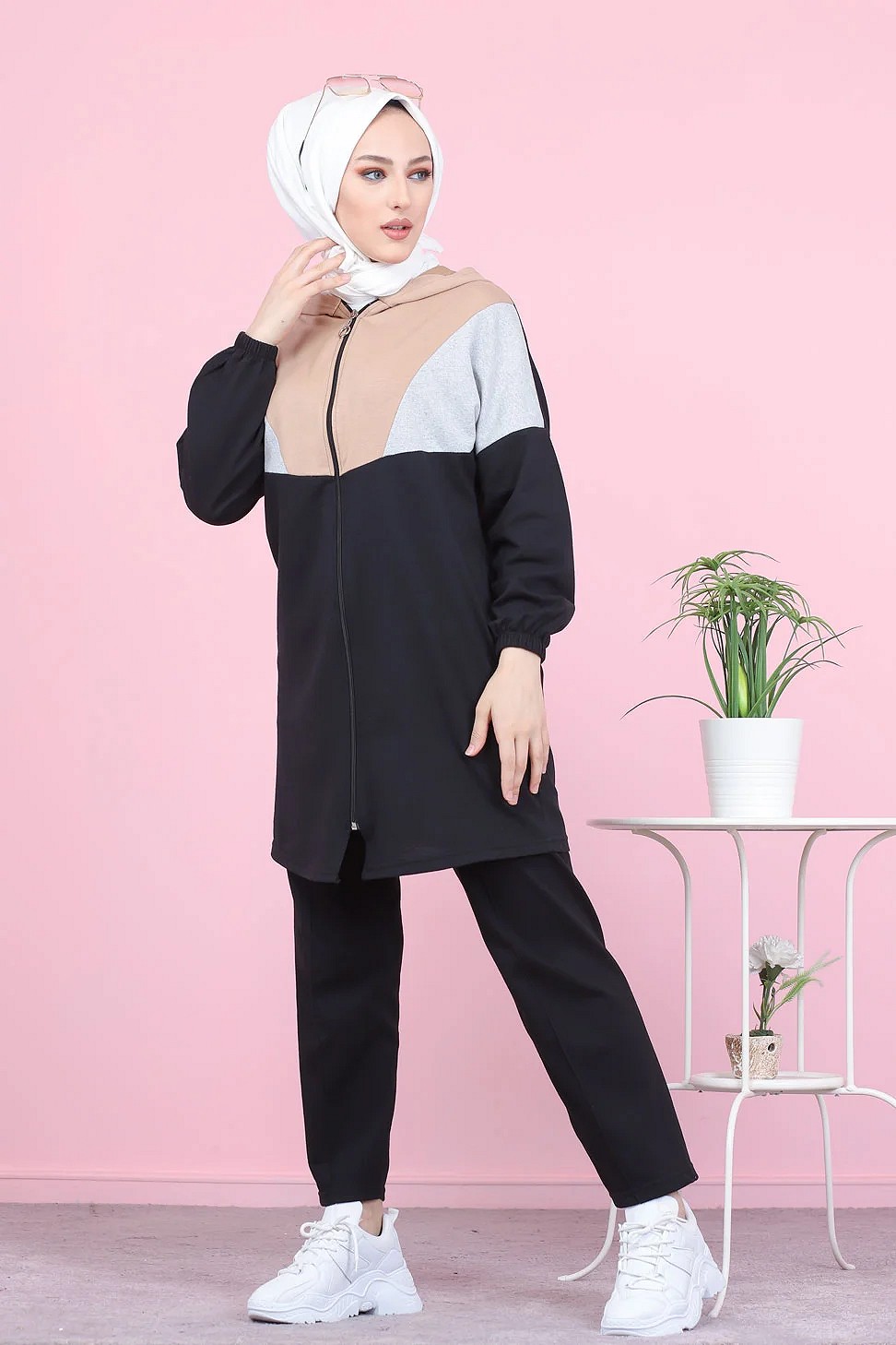 Survêtement hijab sport à capuche pour femme musulmane - Ensemble 2 pièces (Ootd) - Couleur noir et Beige - REF. 32818 (25.00 €)