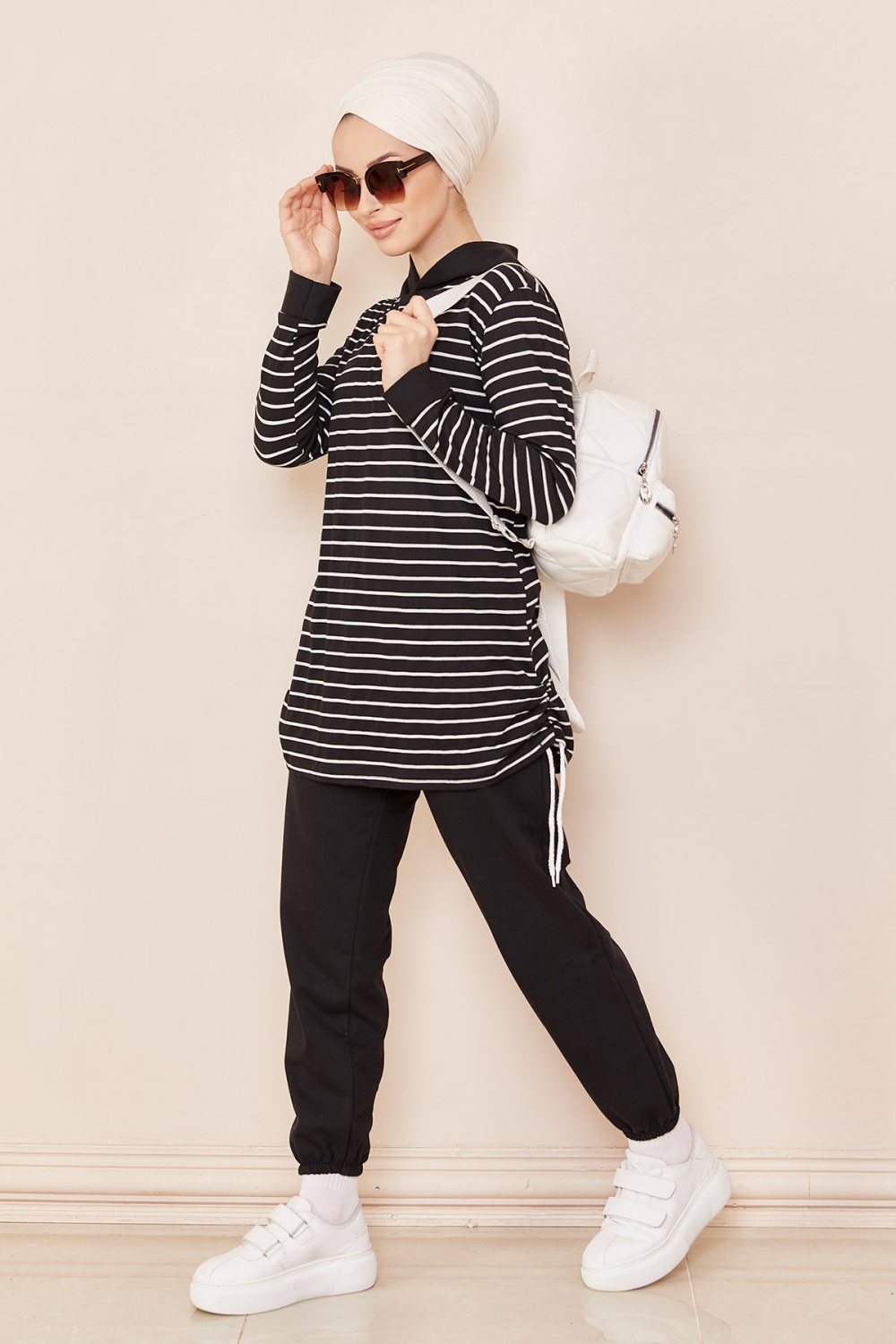 Survêtement original ample (Ensemble Décontracté et Sport pour femme musulmane) - Couleur rose poudré, noir et blanc - REF. 36647 (29.90 €)