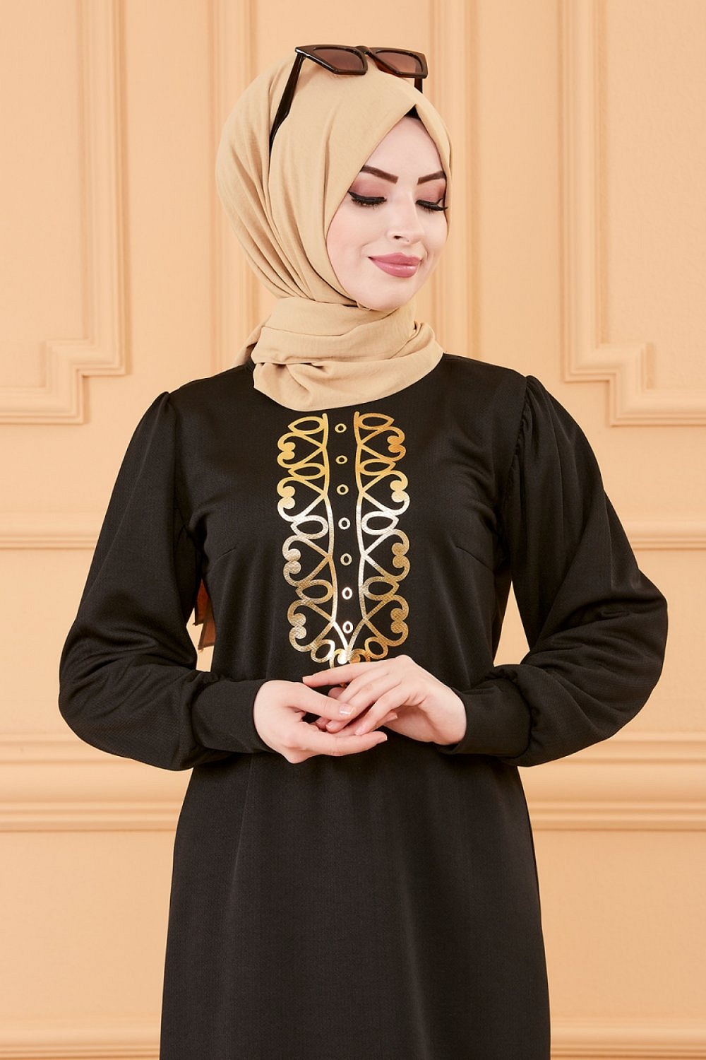 Ensemble habillé tunique et pantalon pour femme (Boutique Prêt-à-porter musulman) - Couleur noir - REF. 36461 (35.00 €)