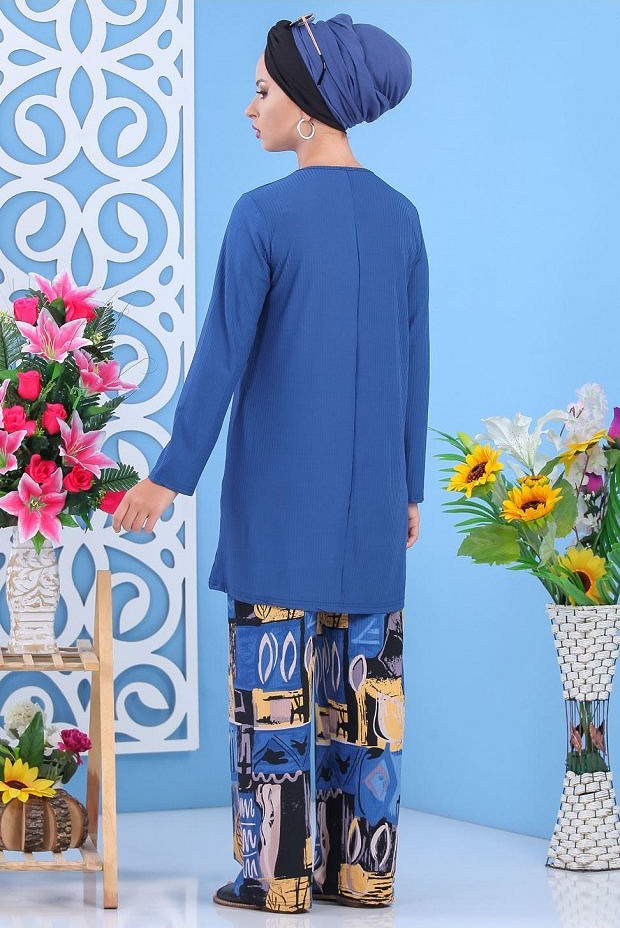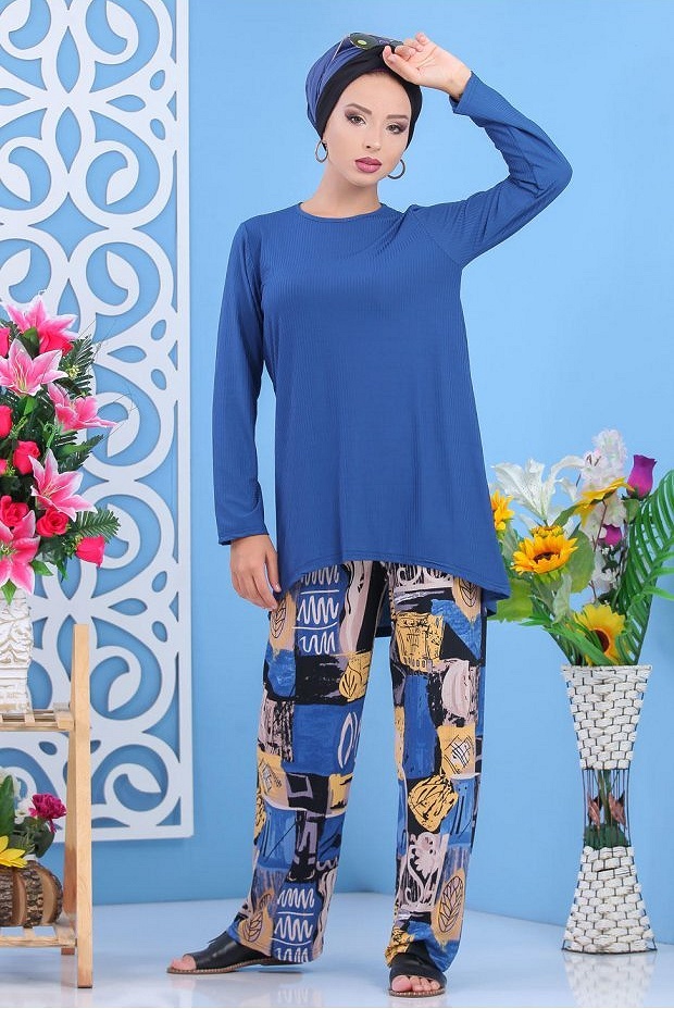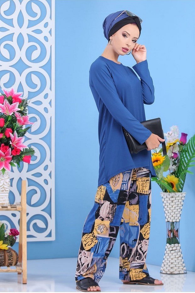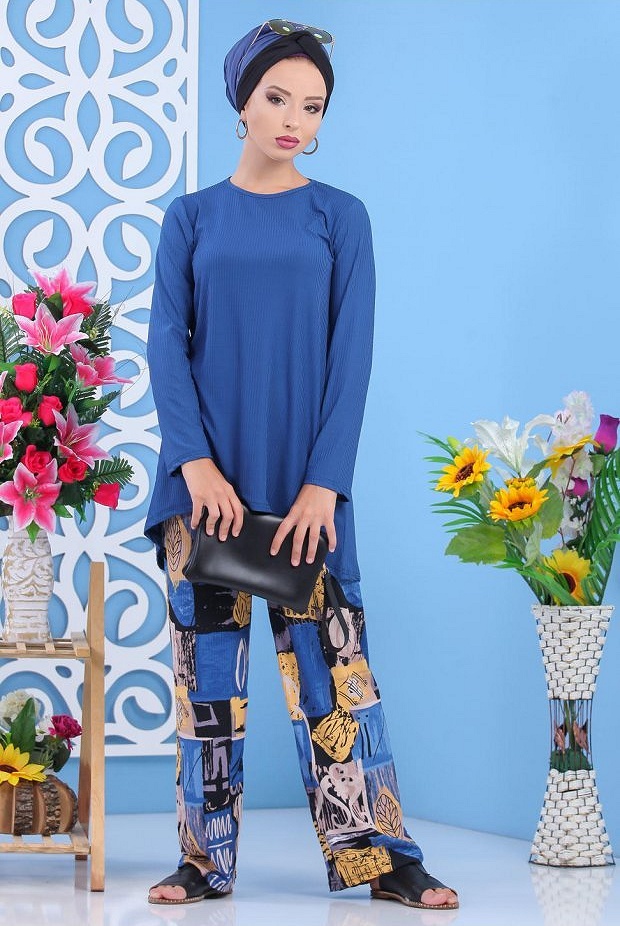 Ensemble deux pièces tunique + pantalon pour femme - Couleur bleu indigo Vetement & Accessoire
