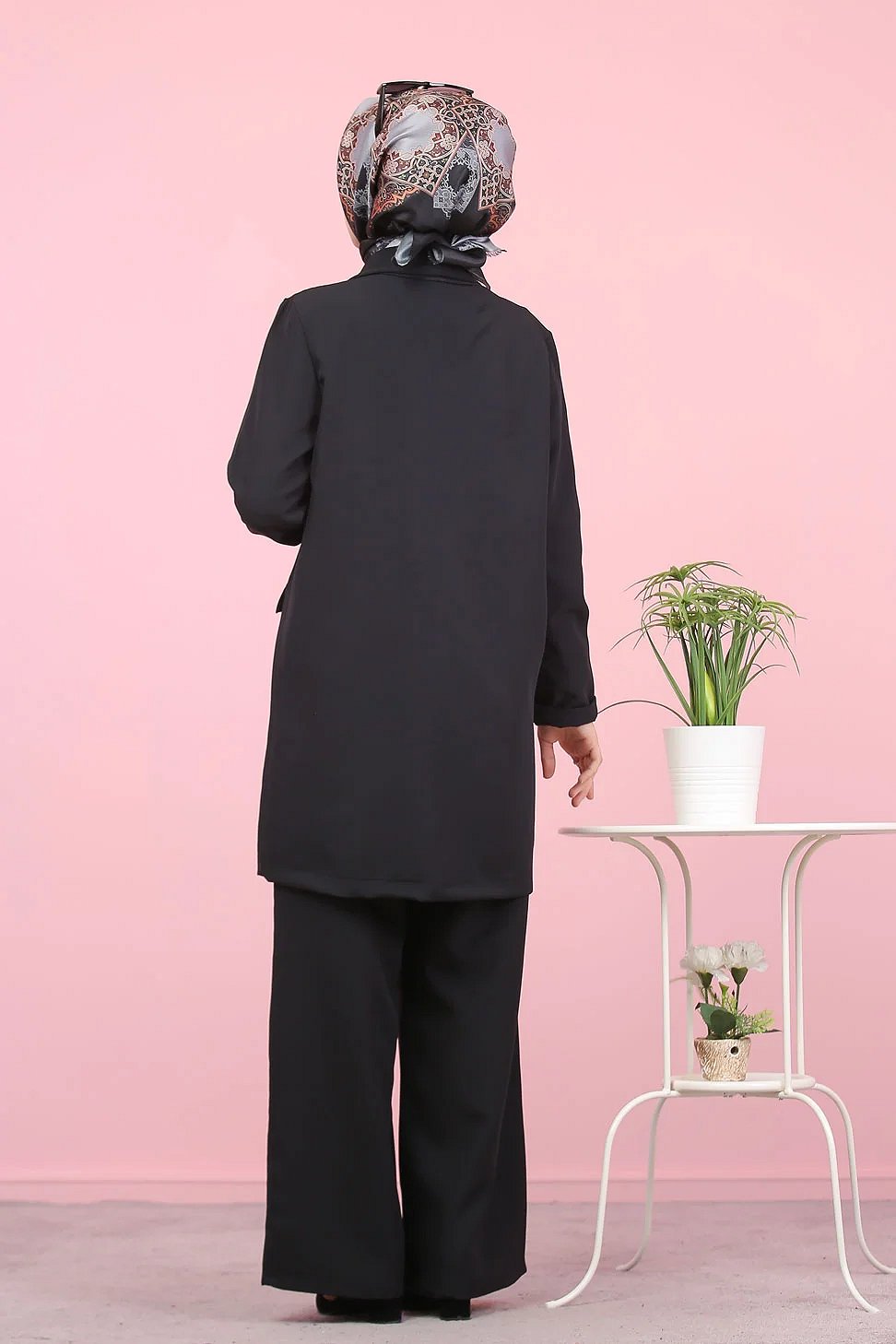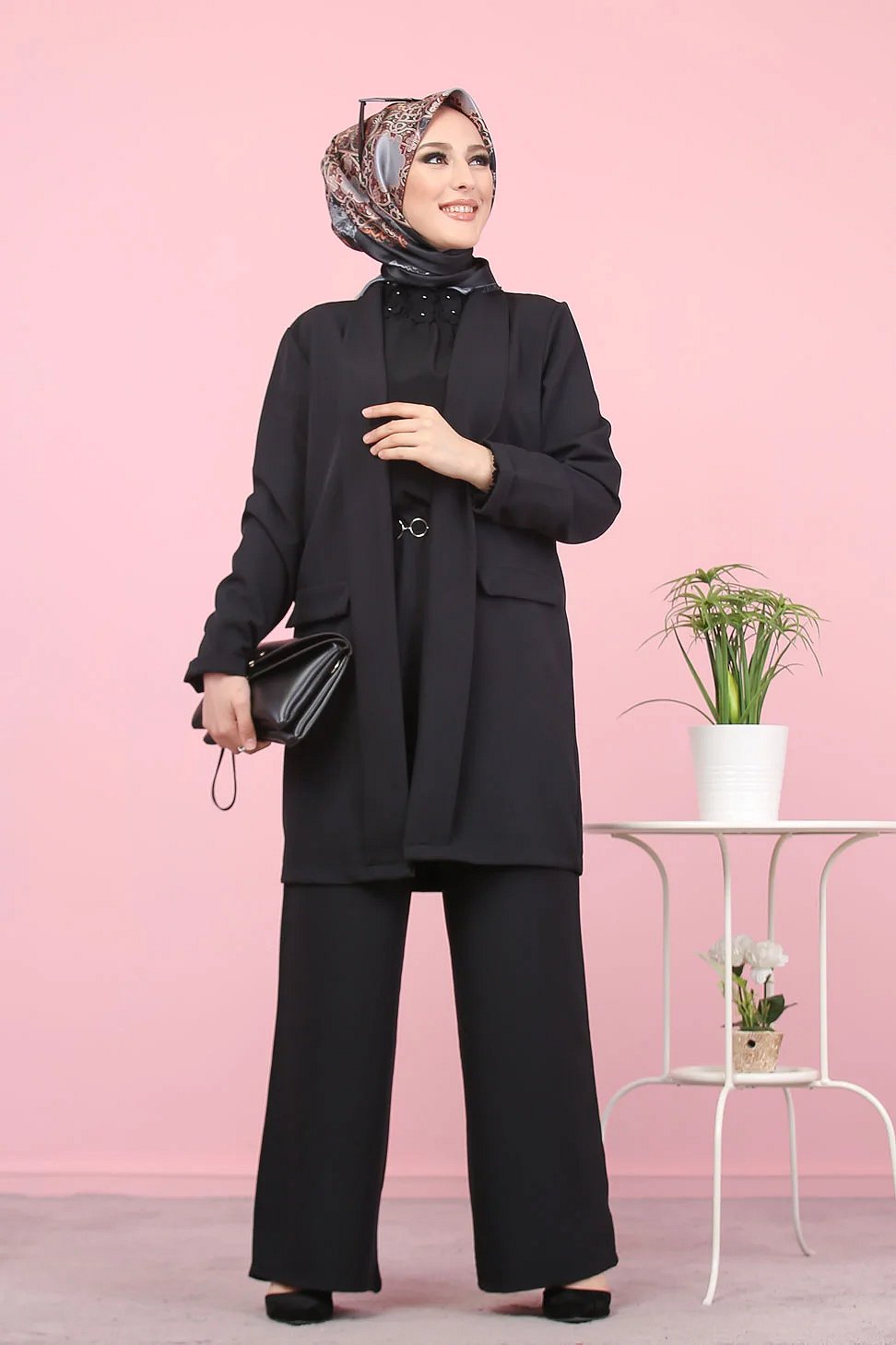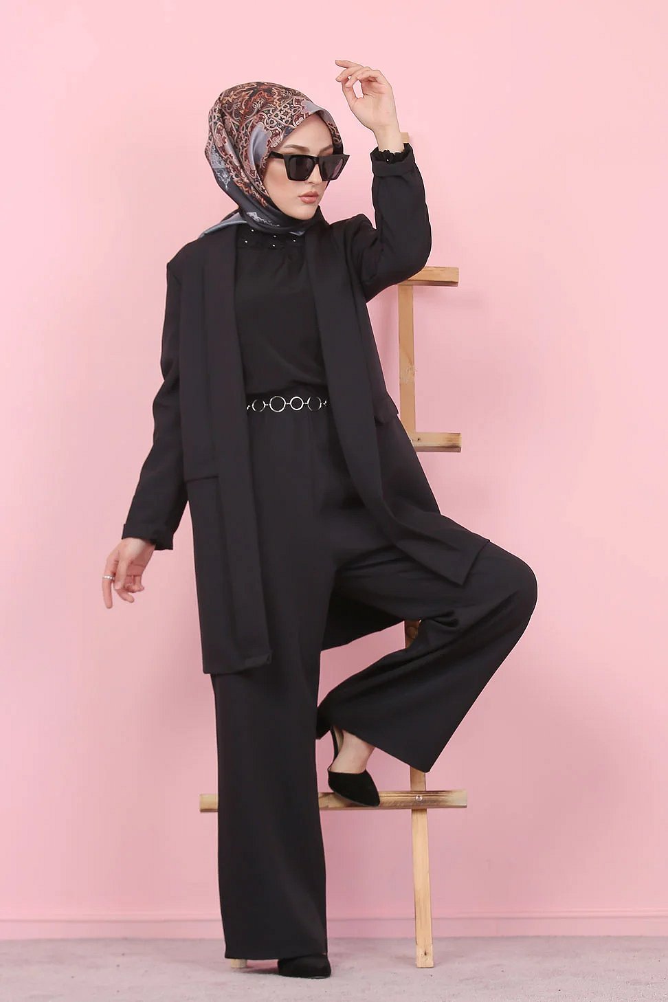 Ensemble élégant veste longue et pantalon pour femme (Tenue Hijab - Modest Fashion) - Couleur noir Vetement & Accessoire