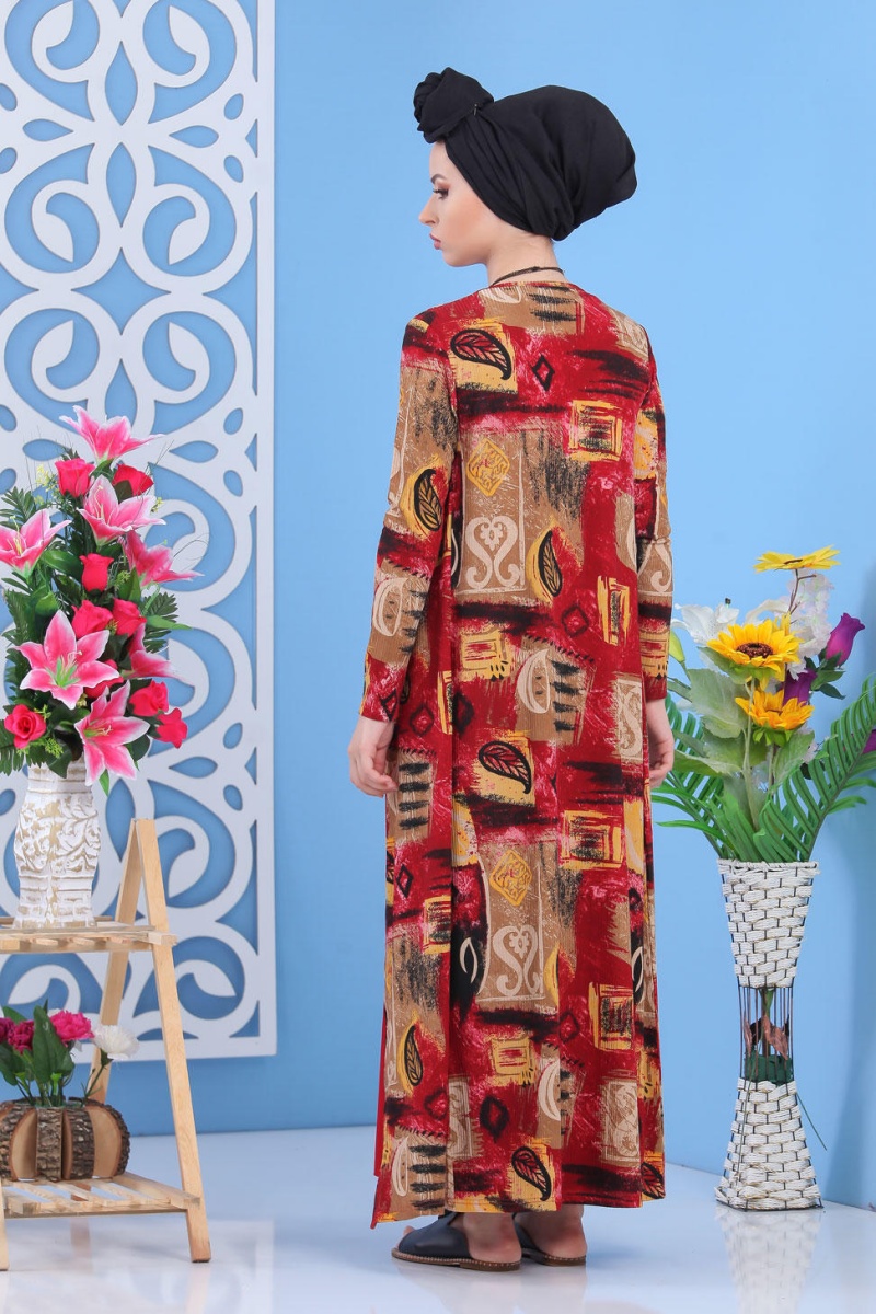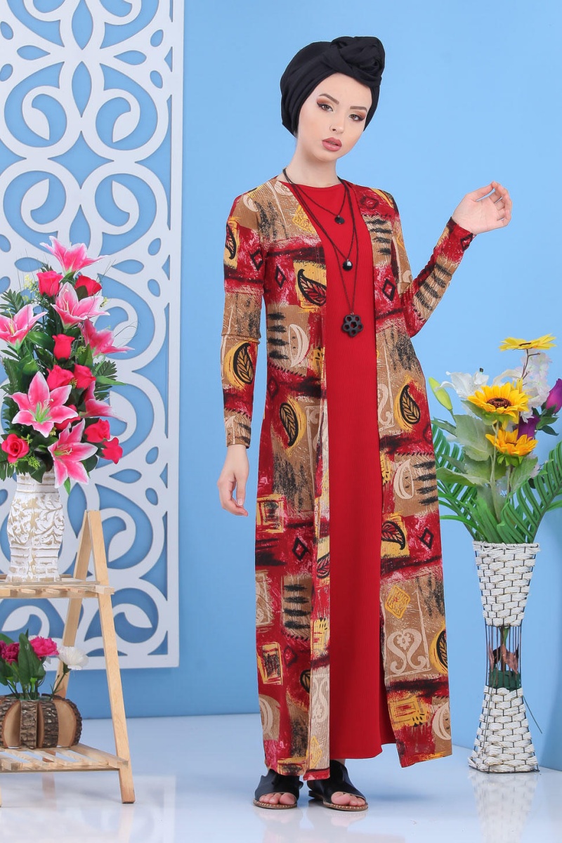 Ensemble femme : Robe bordeaux et kimono assorti (deux pièces) - Tenue chic et moderne pour un style décontracté Vetement & Accessoire