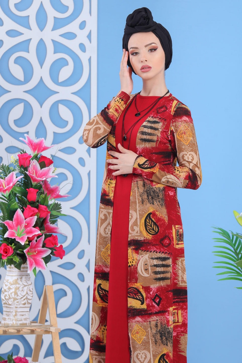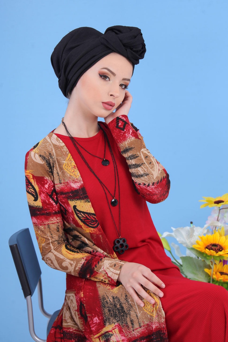 Ensemble 2 pièces décontracté tunique et pantalon (Ensemble femme voilée) - Couleur noir et rouge - REF. 32312 (29.90 €) - En Promotion à 22.00 €