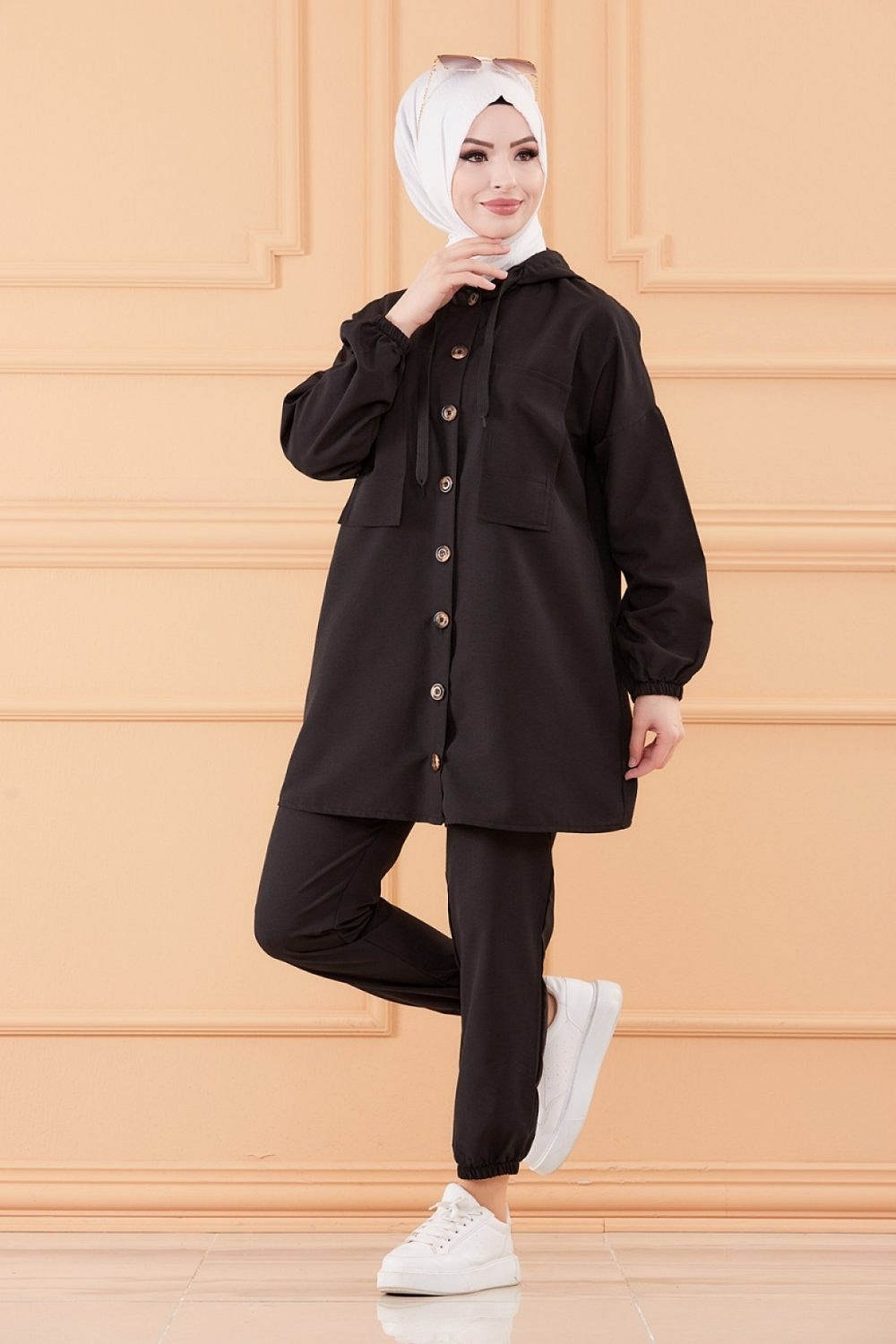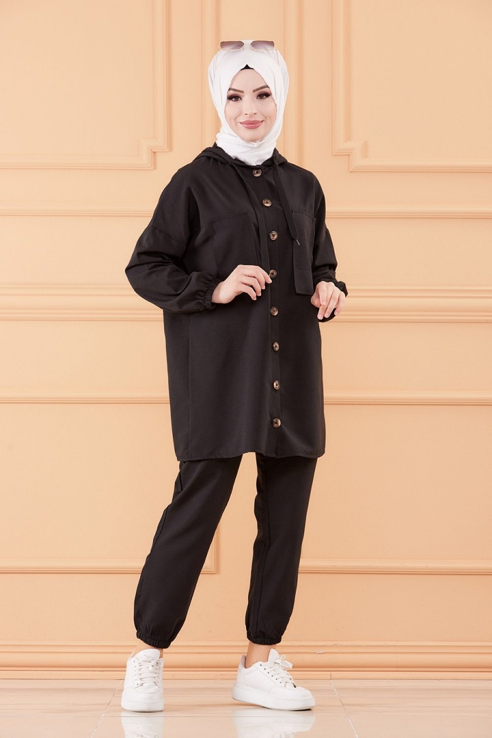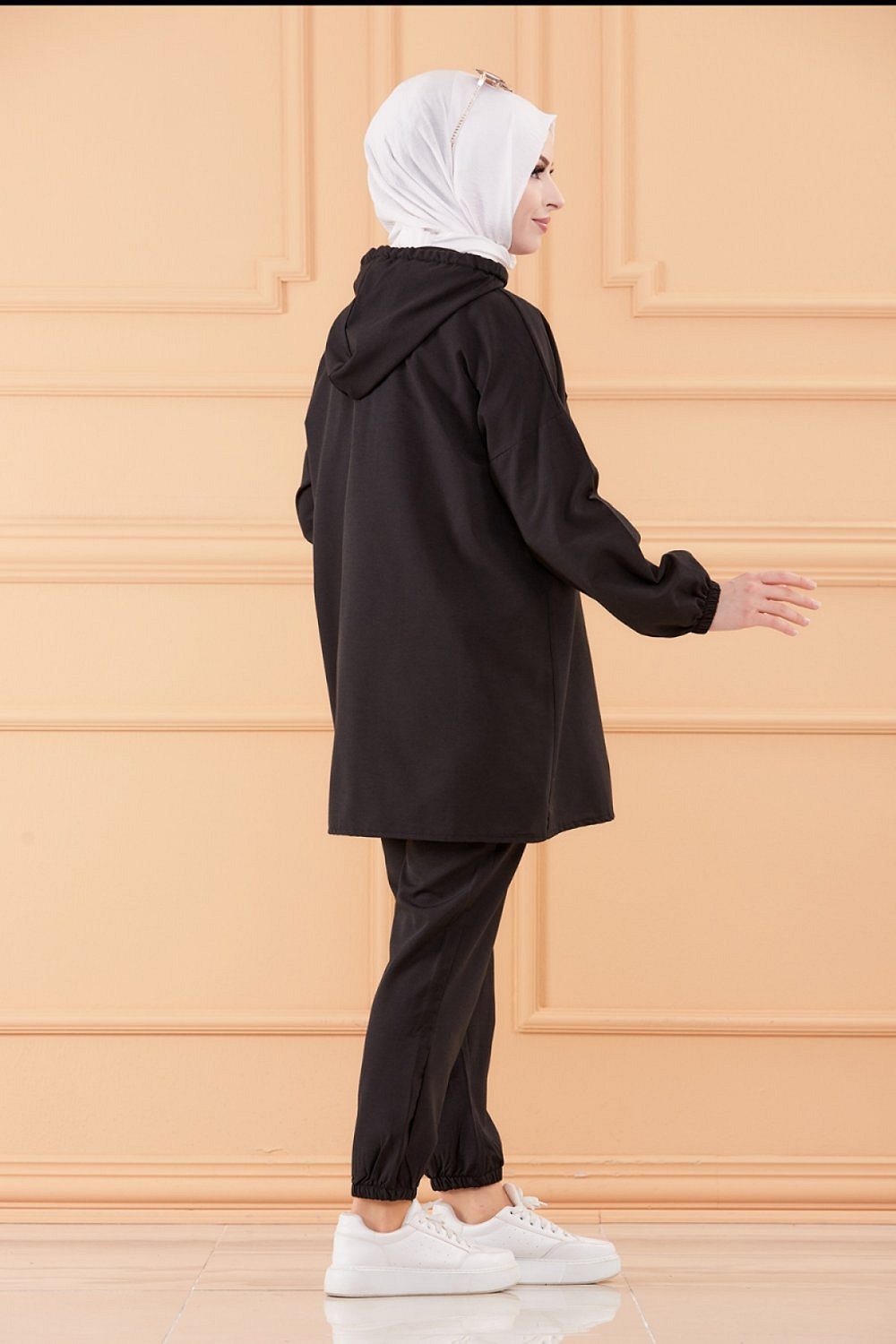 Ensemble femme deux pièces : Tunique évasée et Pantalon assorti (Vetement hijab) - Couleur noir - REF. 36205 (38.00 €)