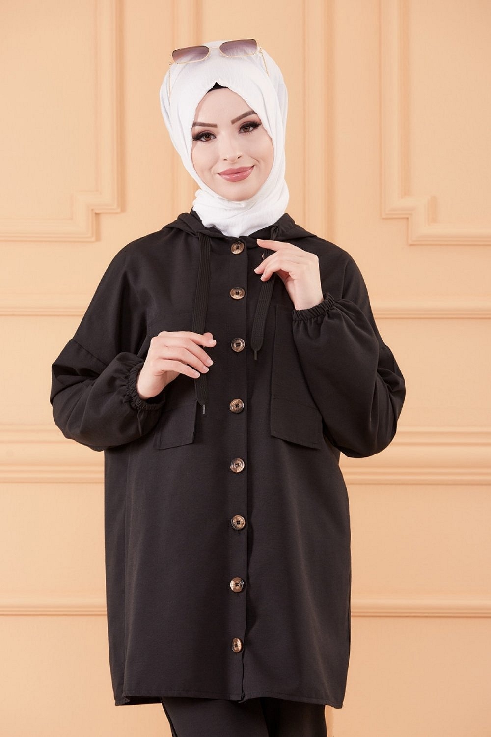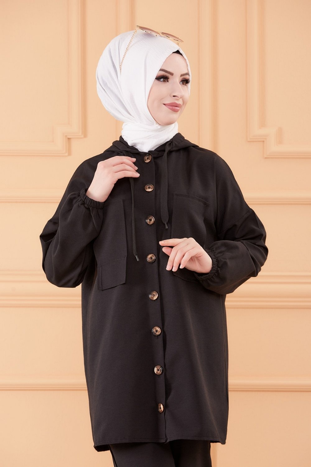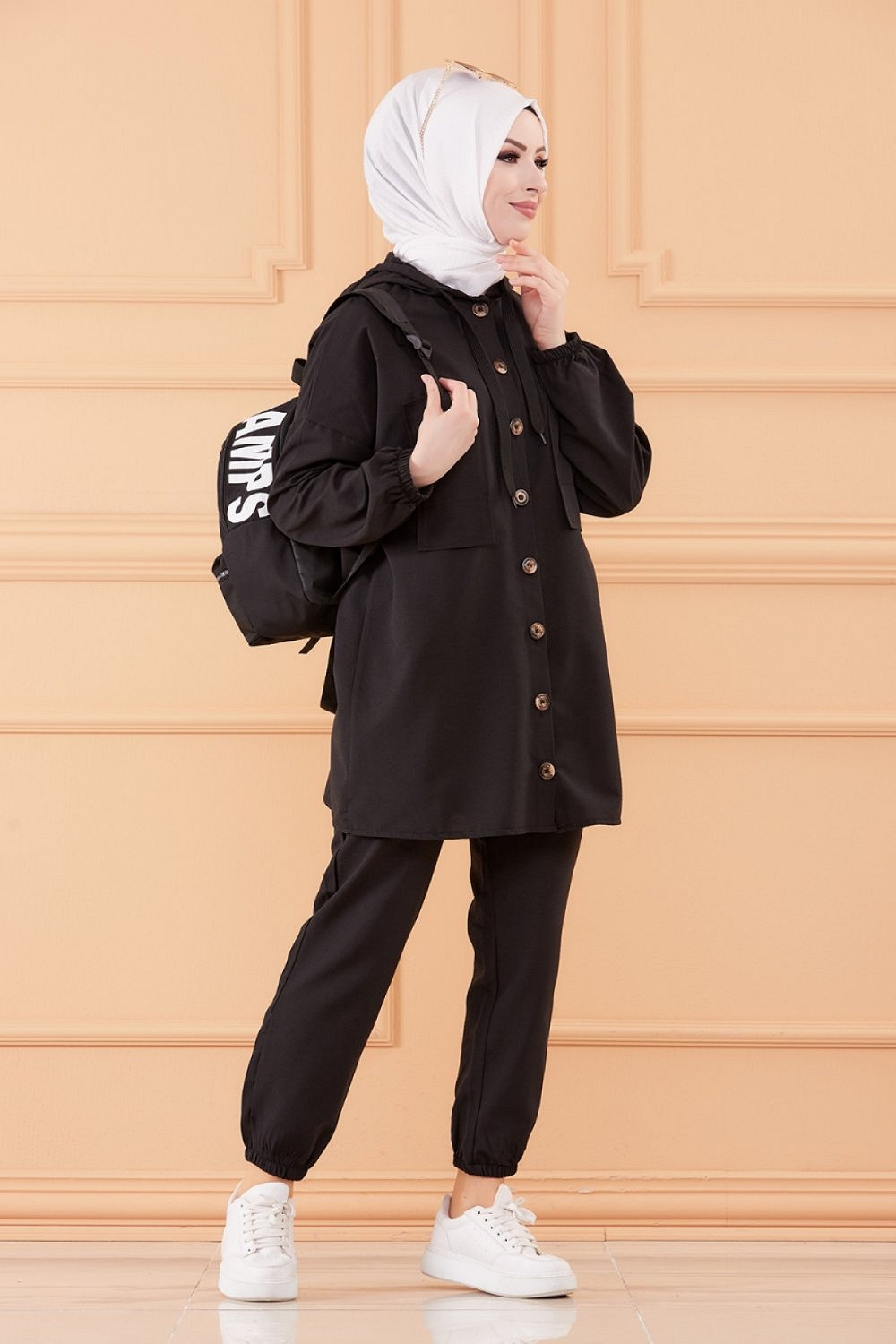 Ensemble femme deux pièces : Tunique évasée et Pantalon assorti (Vetement hijab) - Couleur noir - REF. 36205 (38.00 €)