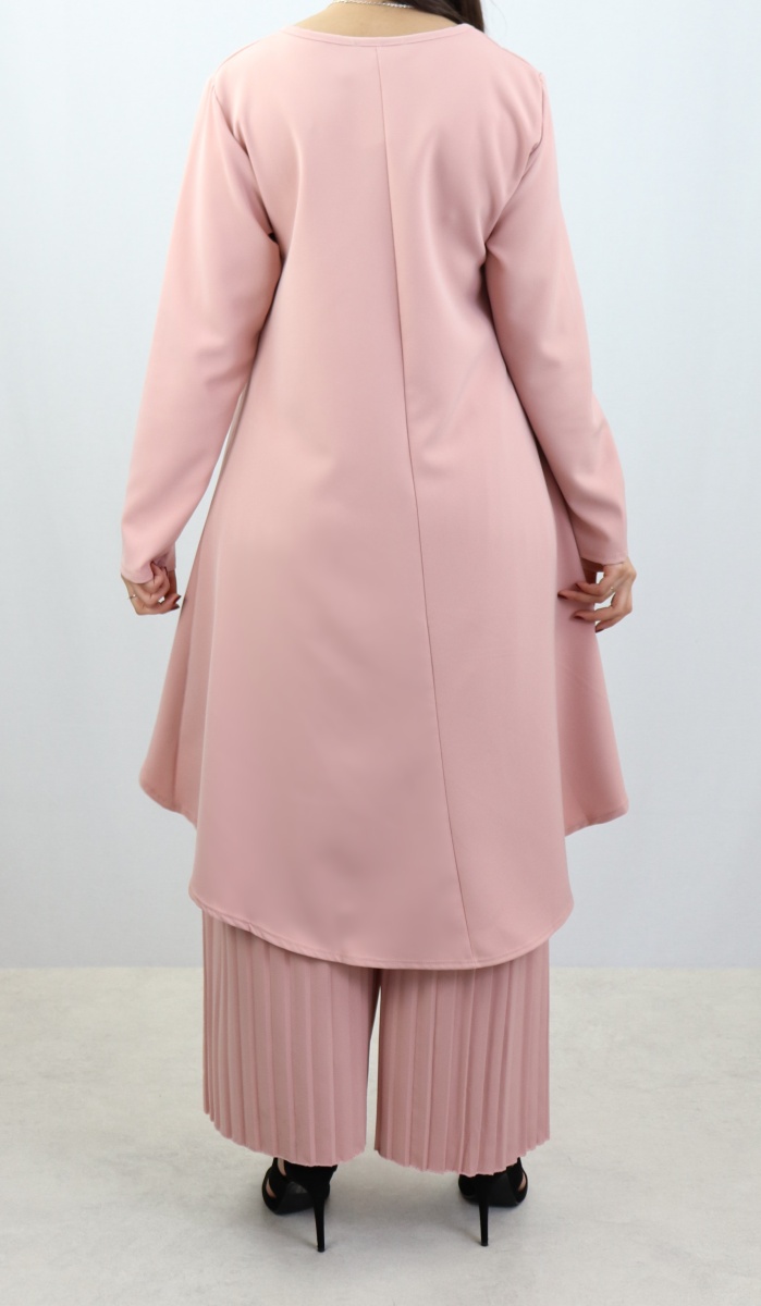Ensemble femme : Tunique et Pantalon Palazzo plissé - Couleur rose clair - Marque Amelis Paris Vetement & Accessoire