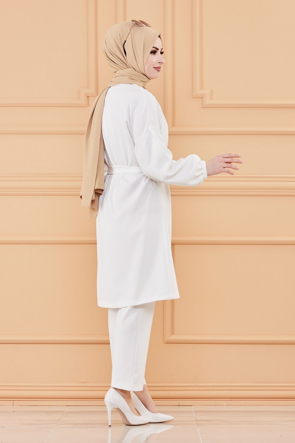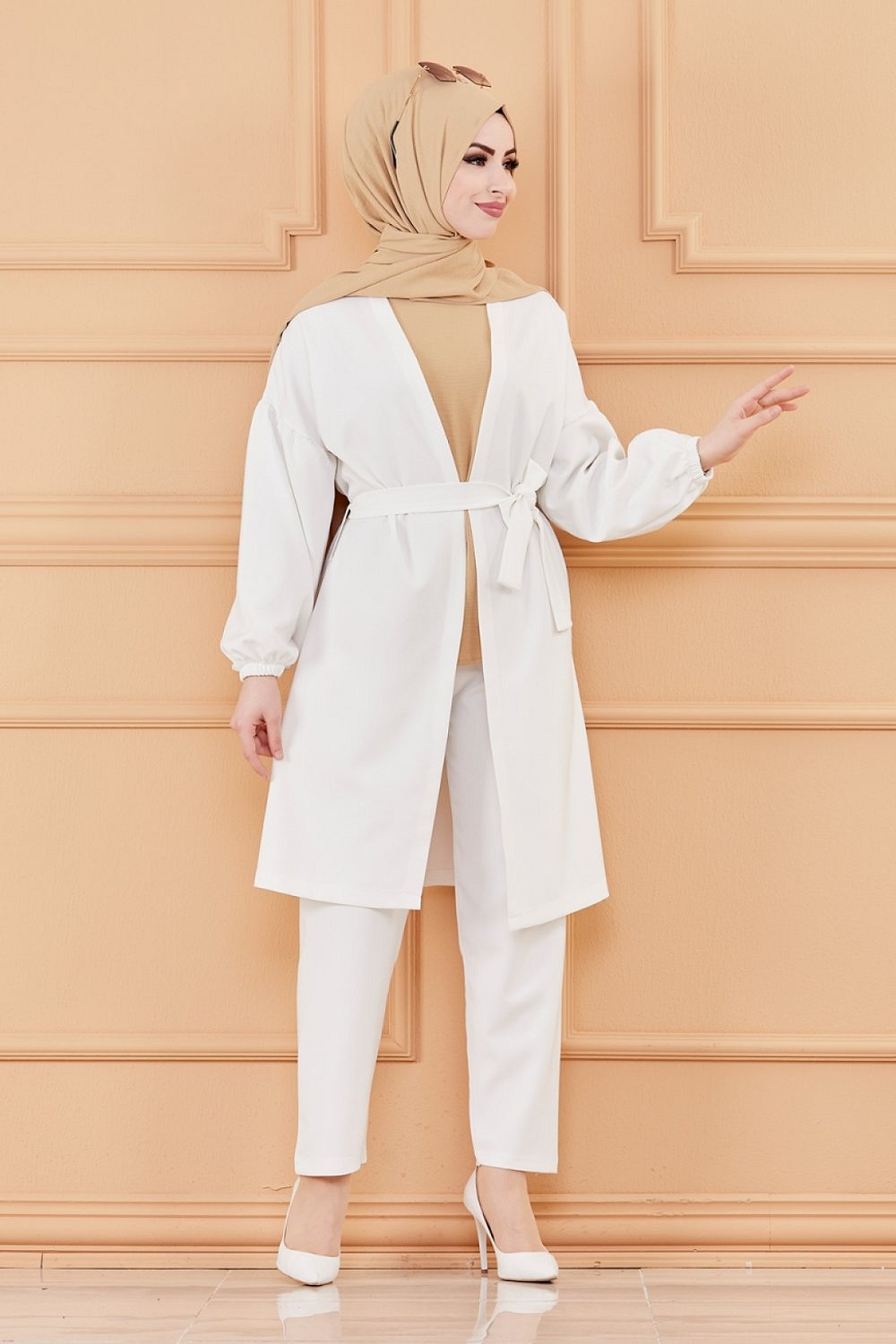 Ensemble femme : Veste et pantalon (Tenue hijab classique) - Couleur blanc Vetement & Accessoire