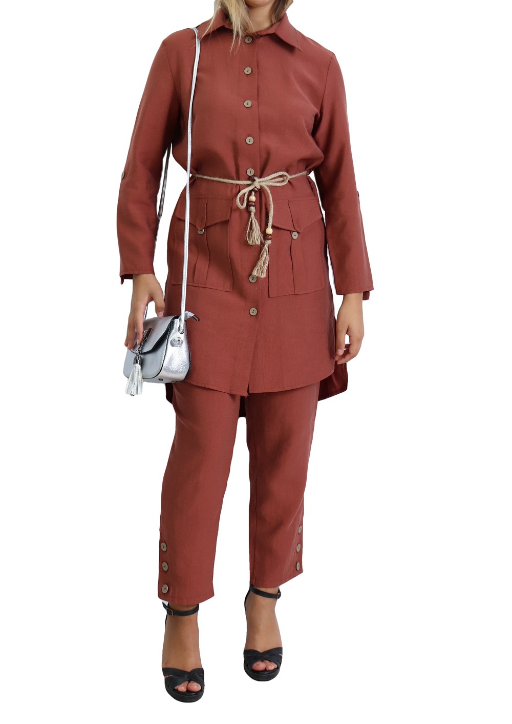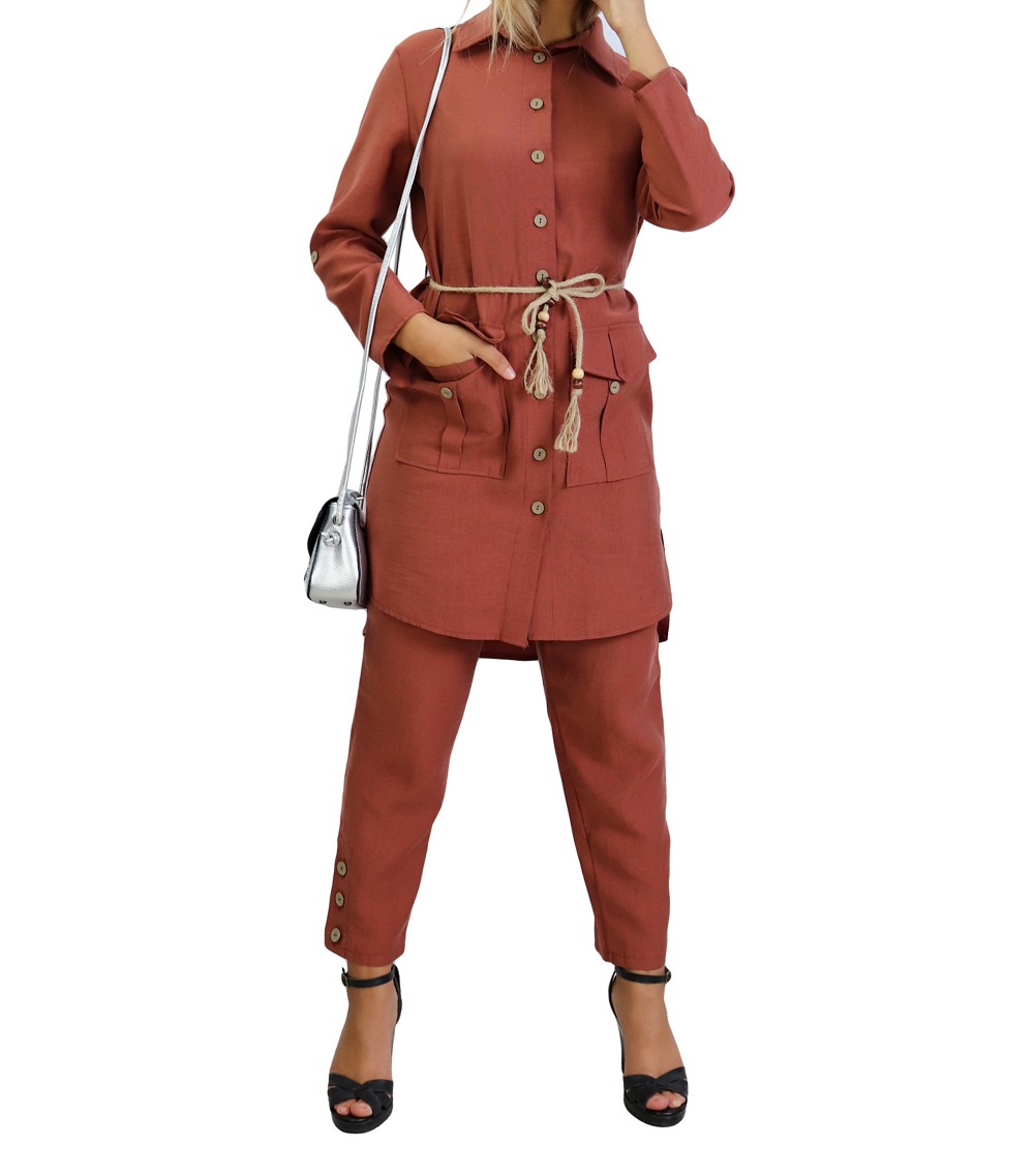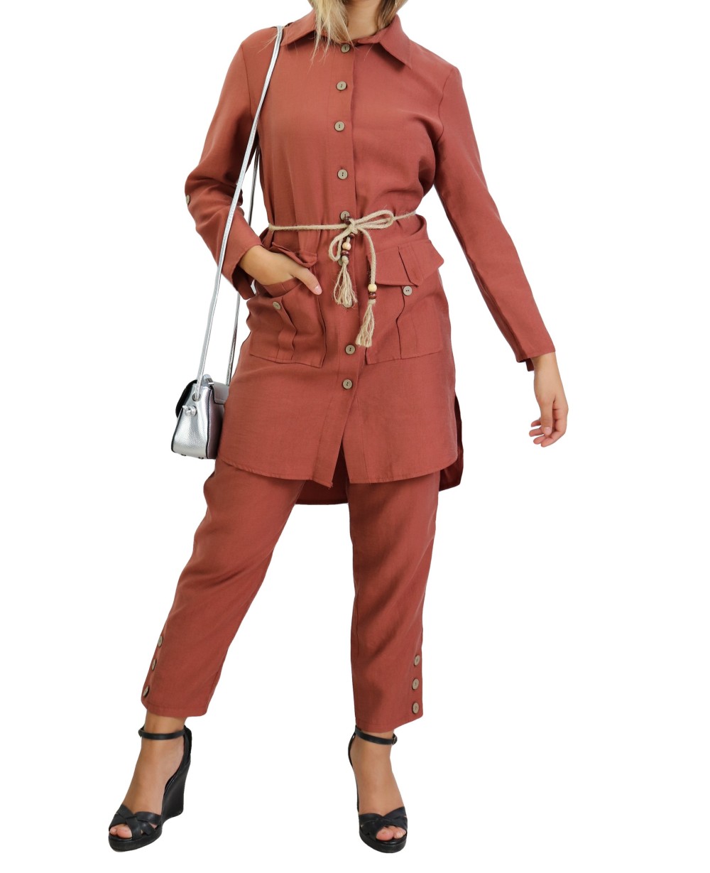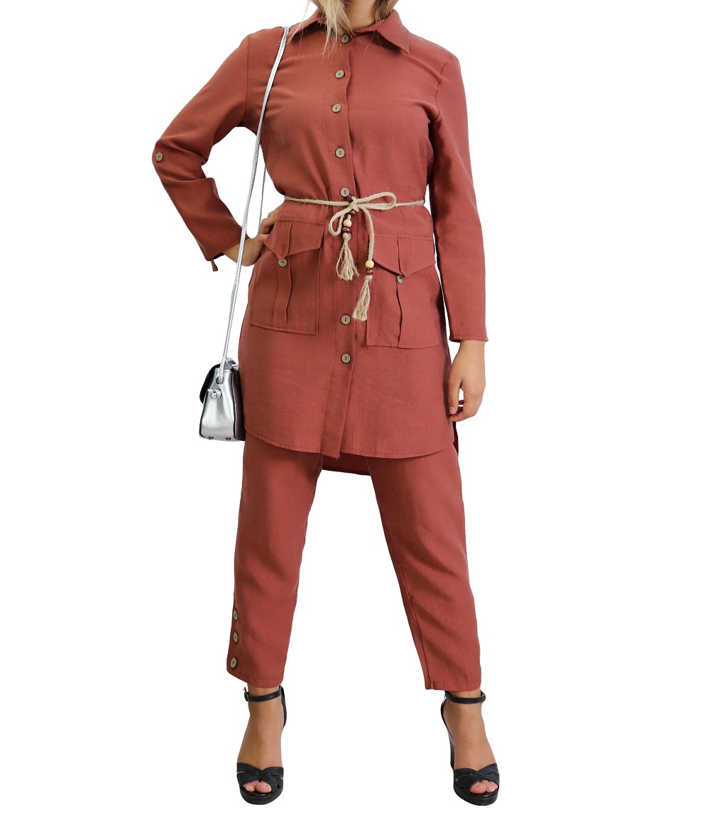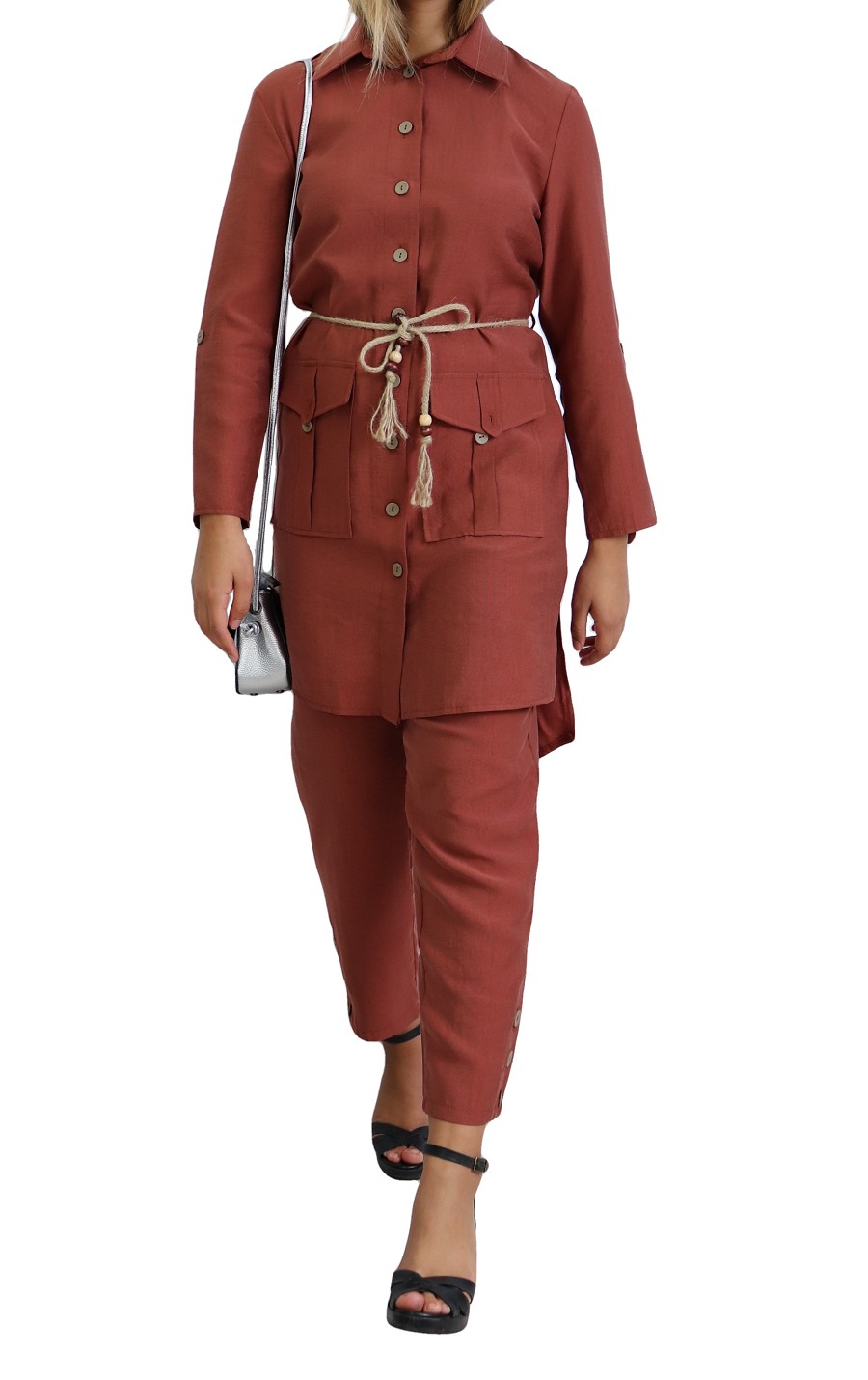 Ensemble classique pour femme (Tenue hijab tunique et pantalon) - Couleur brique - REF. 36023 (38.00 €)