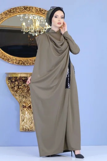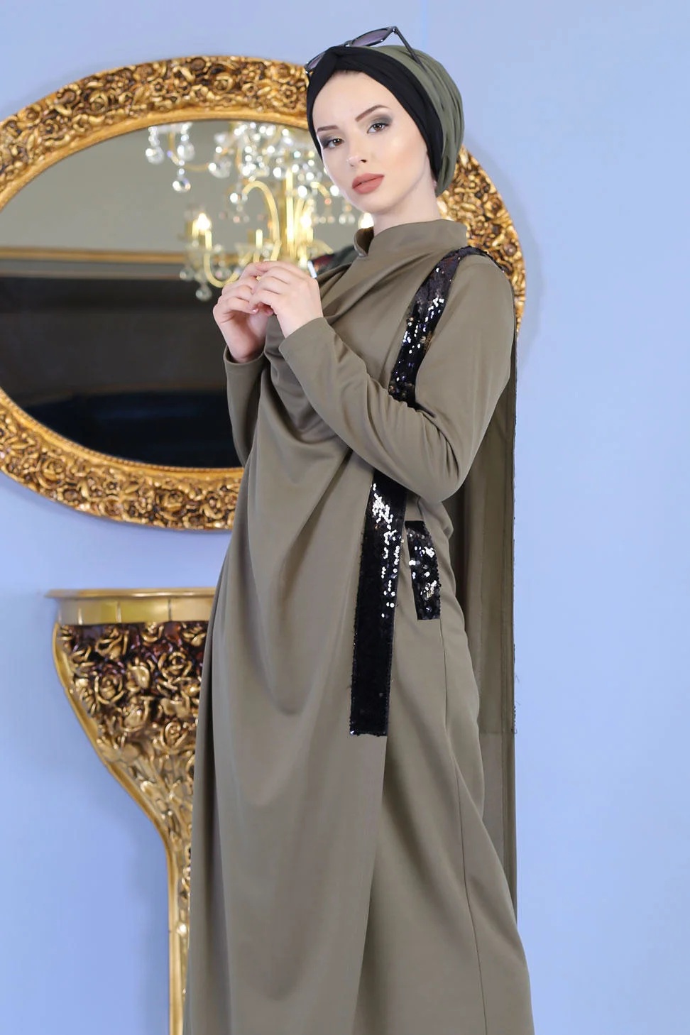 Ensemble tunique et pantalon assorti pour femme (Tenue décontractée moderne Hijab) - Couleur kaki - REF. 37762 (32.00 €)