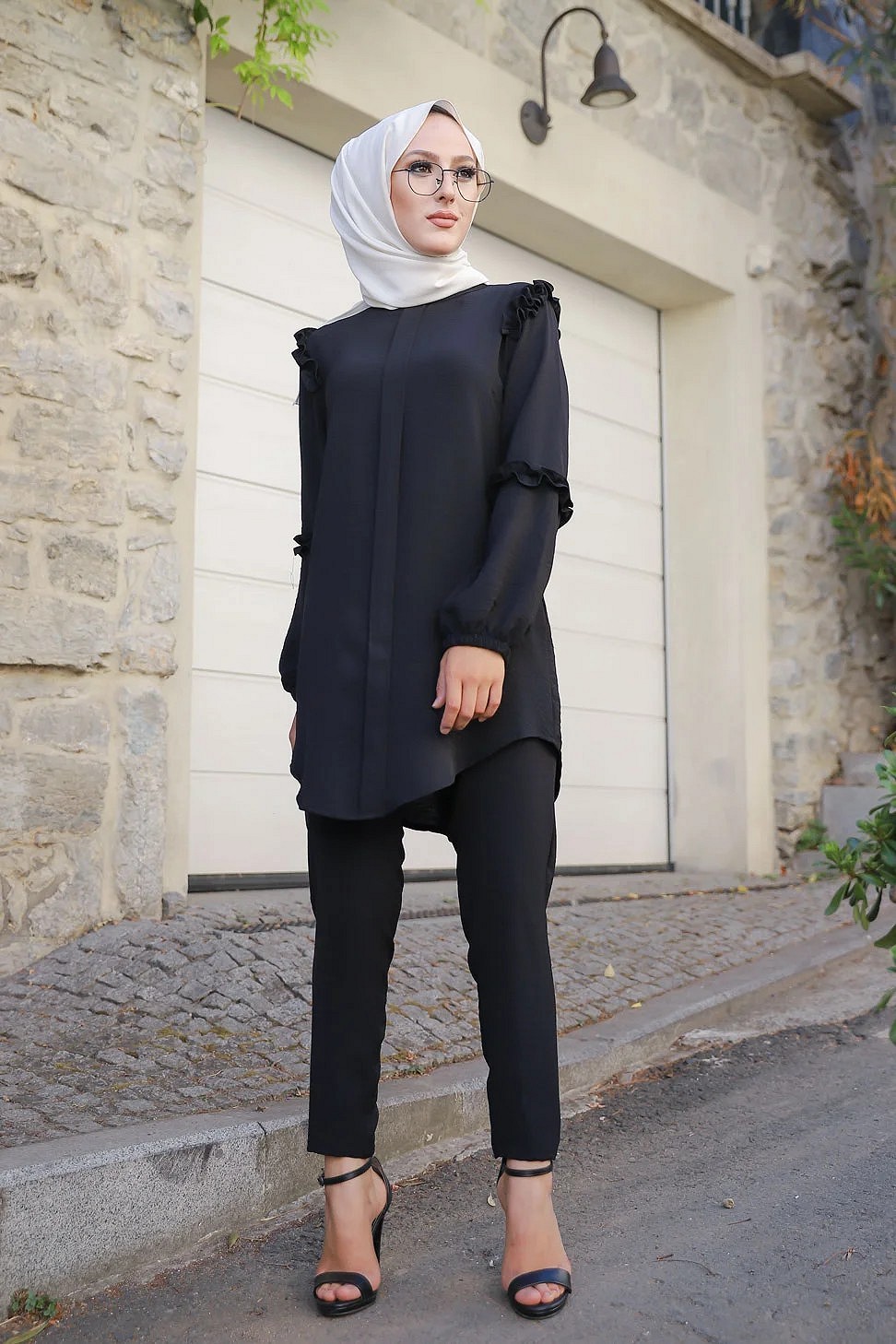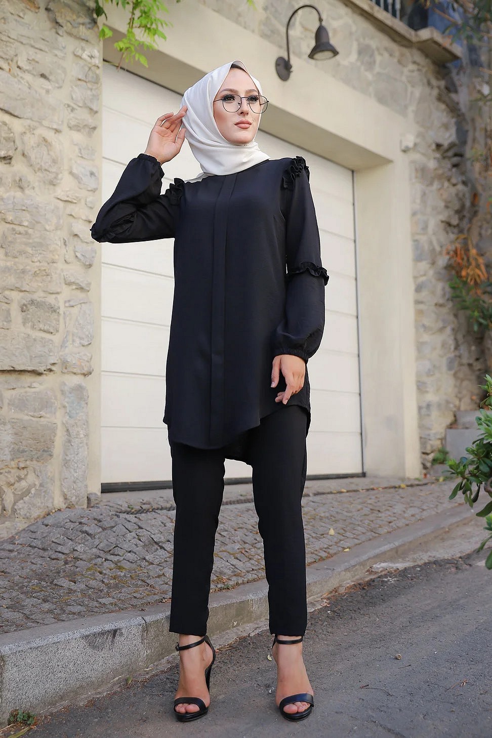 Ensemble femme tunique ample et pantalon (Vetement Modest Fashion) - Couleur noir Vetement & Accessoire