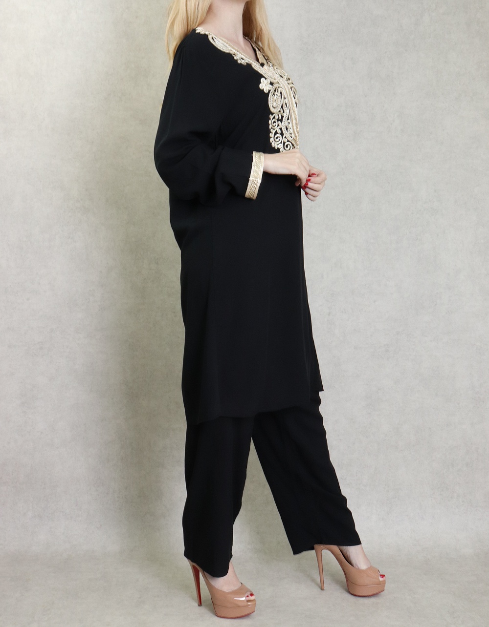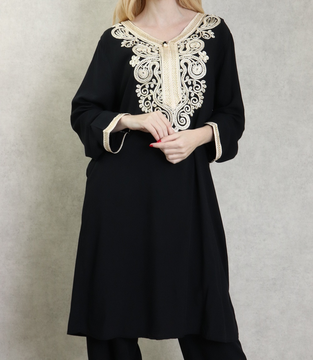 Ensemble chic 2 pièces tunique + pantalon - Tenue classe et mastoura pour femme - Couleur Noir - REF. 30603 (39.00 €) - En Promotion à 34.00 €