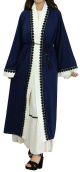 Cardigan à lacets pour femme (Gilet long style kimono - Modest Fashion France) - Couleur bleu indigo - REF. 35828 (19.90 €)