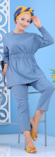 Ensemble tunique cintrée et pantalon - Couleur bleue ciel (Vetement femme élégante fabriqué en Turquie) - REF. 30697 (29.90 €) - En Promotion à 24.90 €